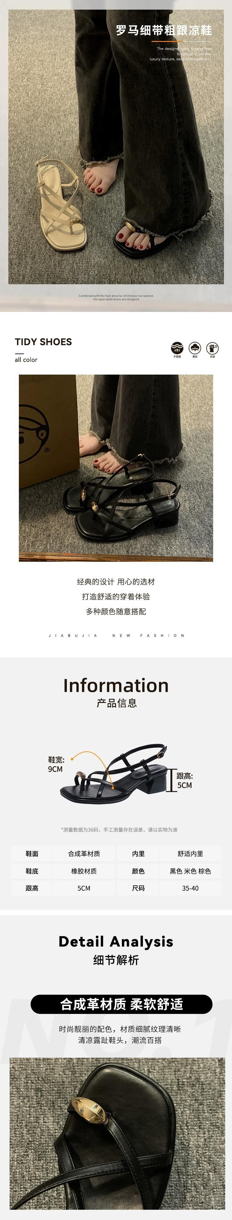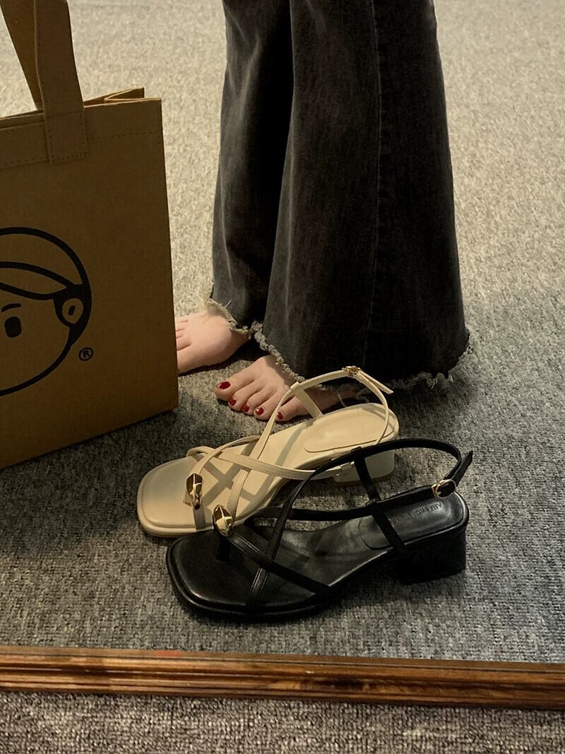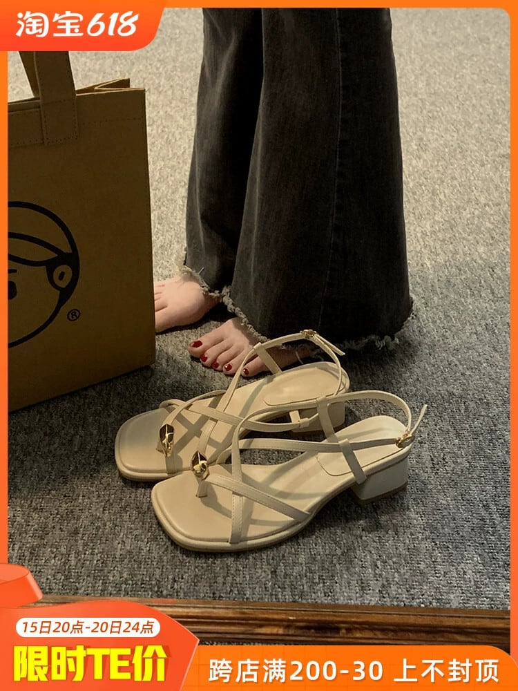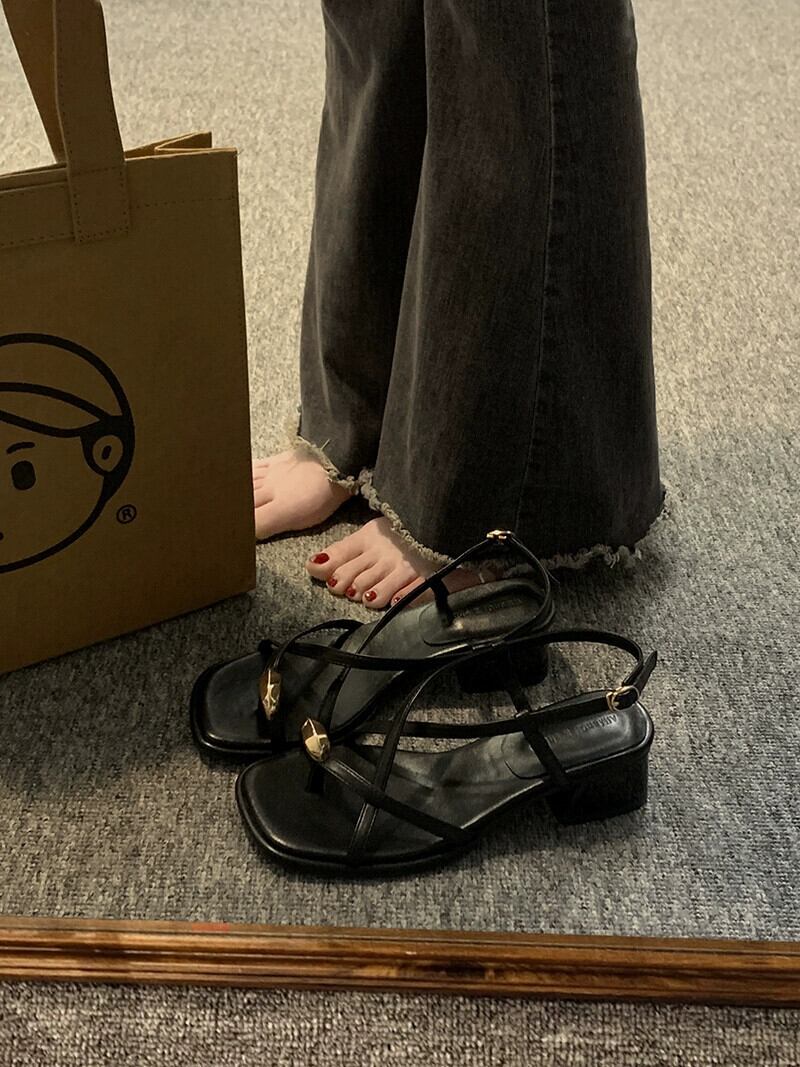 Jiabu 偽サンダルの女性の 2023 春の新ファッションオールマッチレトロメタル気質太いヒールノンスリップローマの靴 シューズ スプリング 春物 jxjxf88310658290