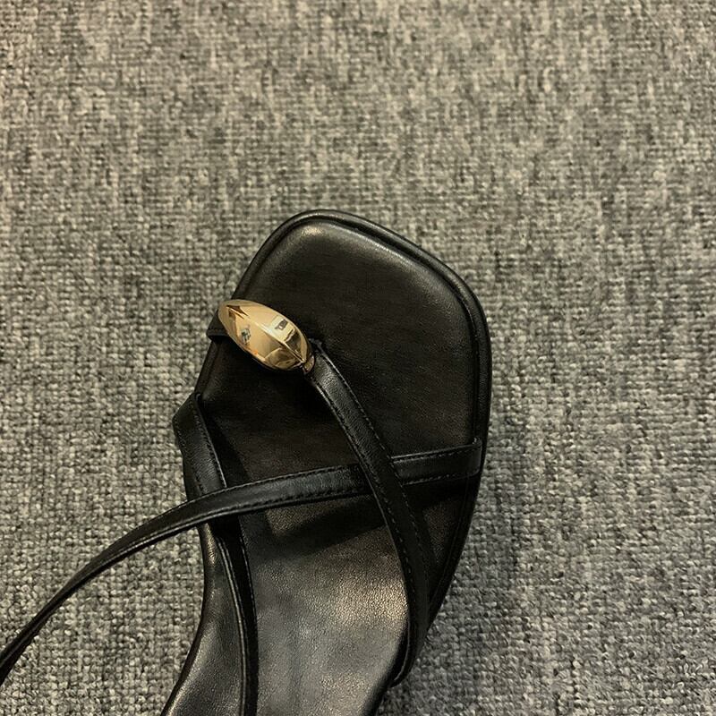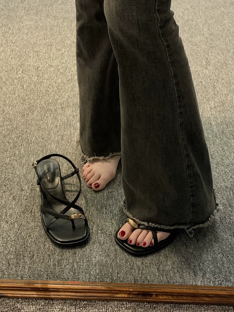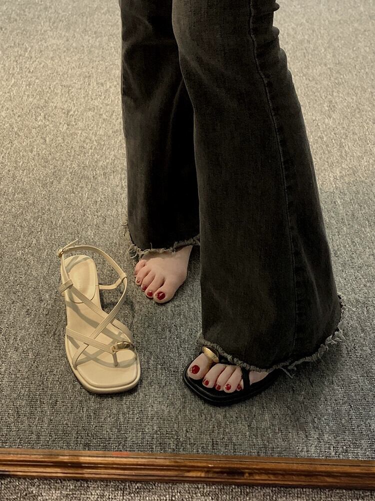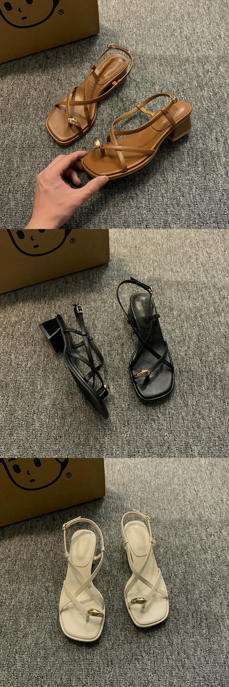 Jiabu 偽サンダルの女性の 2023 春の新ファッションオールマッチレトロメタル気質太いヒールノンスリップローマの靴 シューズ スプリング 春物 jxjxf88310658290