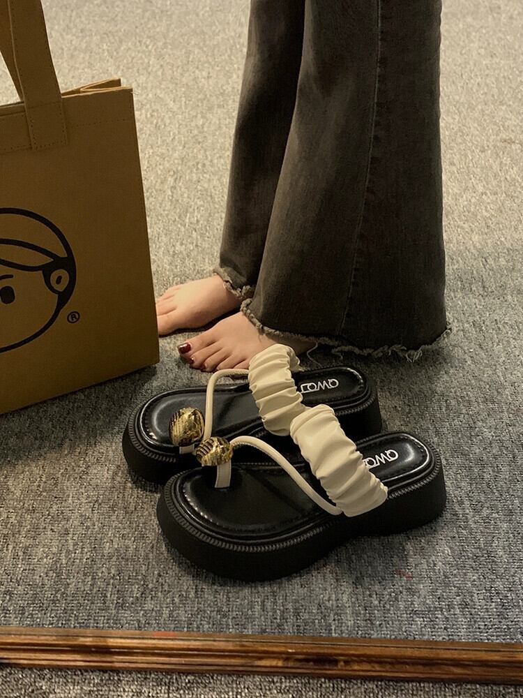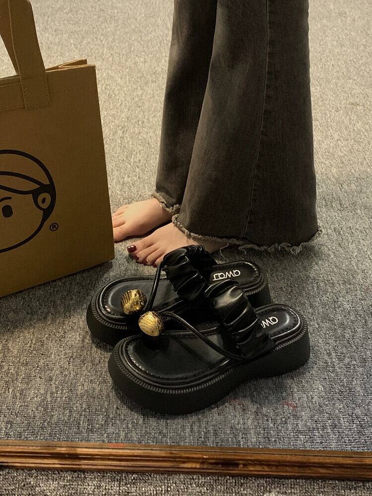 厚底つま先スリッパの女性の 2023 年春のお出かけの新しいファッションオールマッチレトロな小さなカジュアルサンダルとスリッパ ミュール 靴 シューズ スプリング 春物 jxjxf49952637131