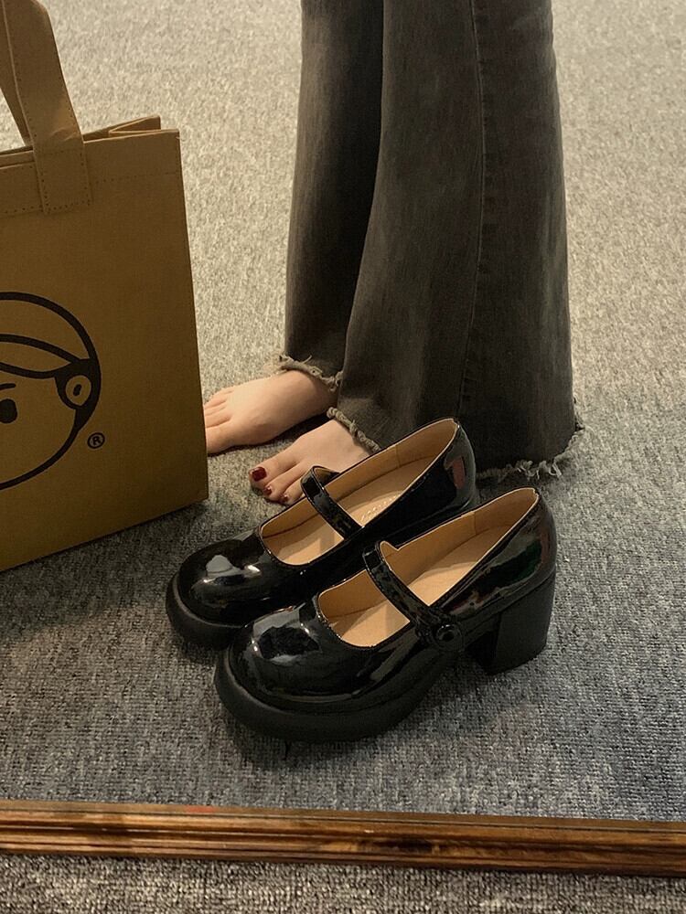 シングルシューズ女性の 2023 春の新ファッションオールマッチベルクロ小さなハイヒールレトロメリージェーンシューズ 靴 スプリング 春物 jxjxf33709693423