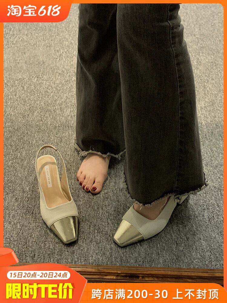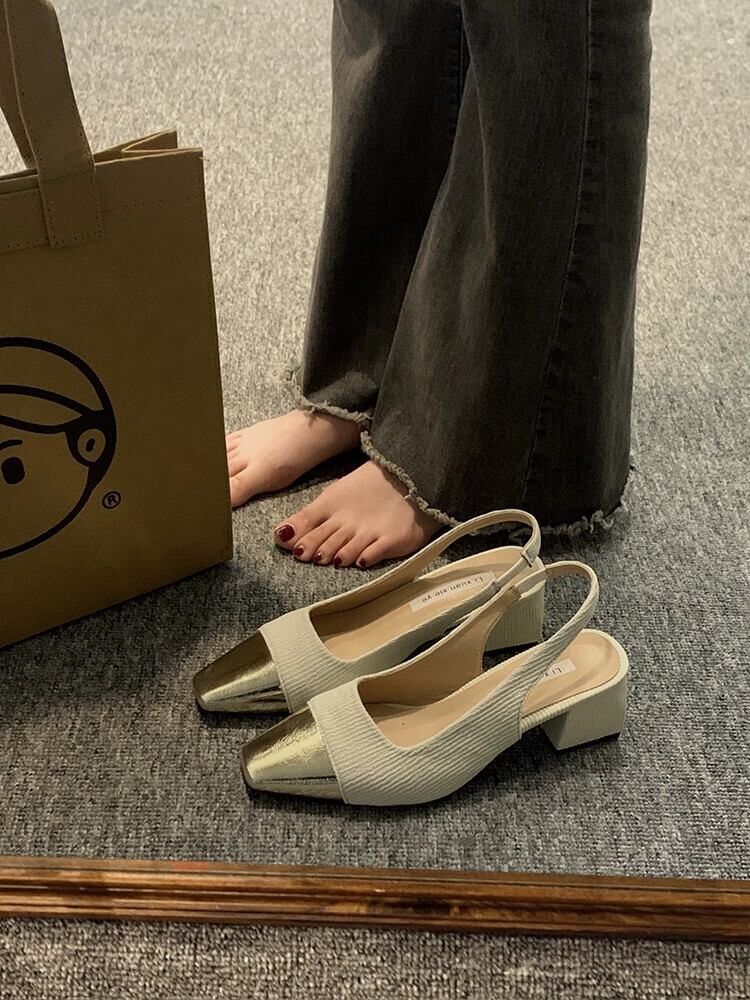 Baotou 厚底サンダル女性の 2023 春の新作ファッションオールマッチレトロな気質フレンチスタイルの美しいハイヒールサンダル 靴 シューズ スプリング 春物 jxjxf46523376484