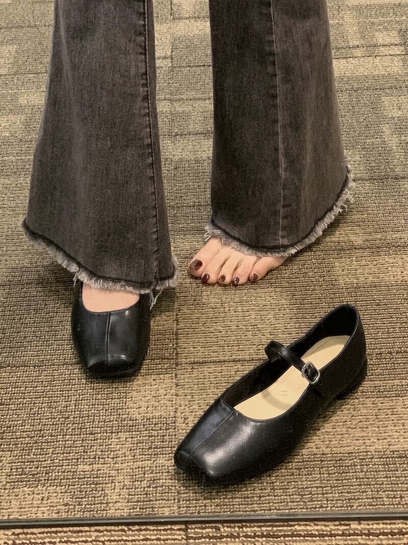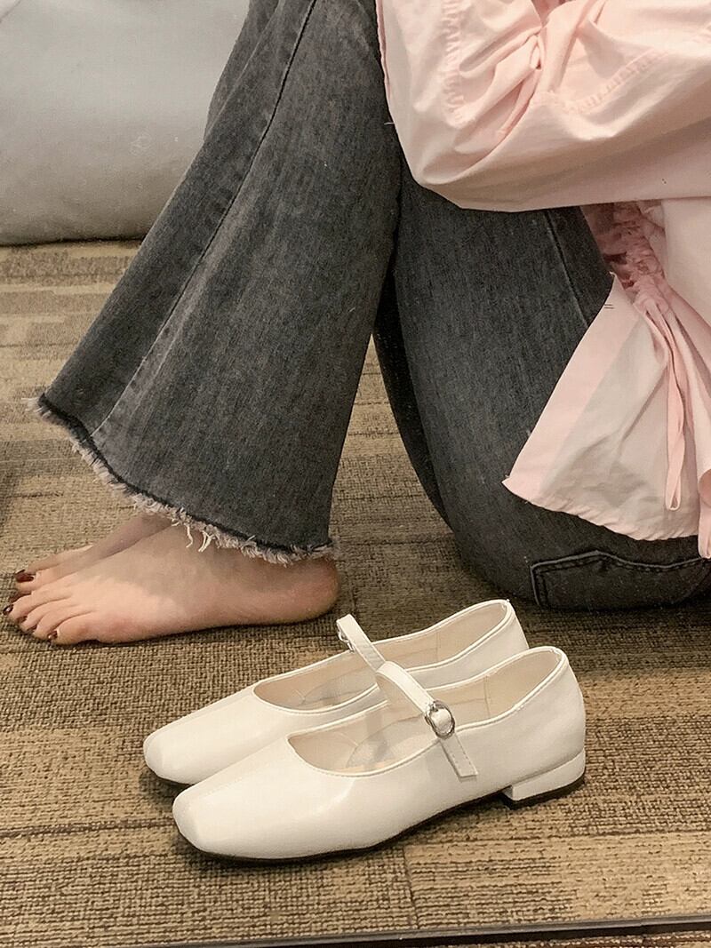 スクエアトゥシングルシューズレディース 2023 春の新ファッションオールマッチレトロ浅口ローヒール eign スタイルフレンチメリージェーンシューズ 靴 スプリング 春物 スクウェア jxjxf82293149537