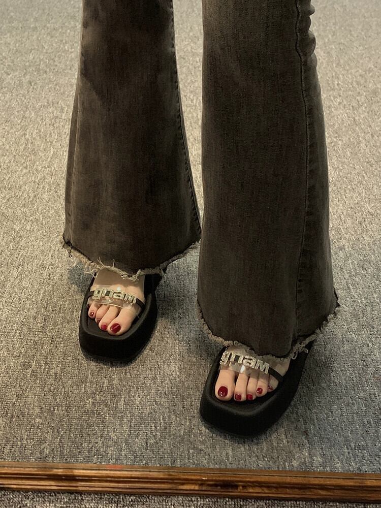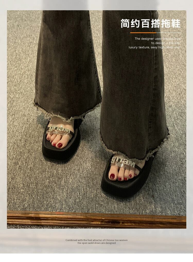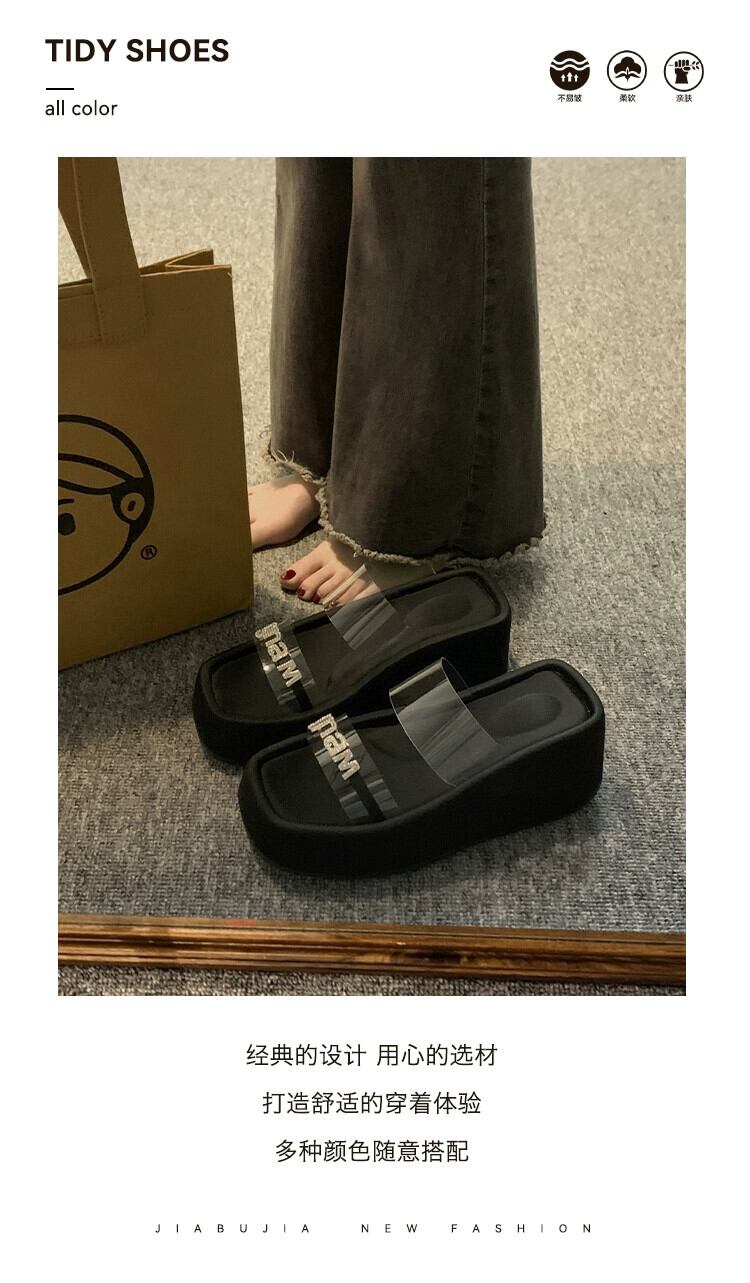 スロープヒールスリッパ女性は2023年の夏に外出する新しいファッション厚底アウターサンダル透明サンダルとスリッパを増加します ミュール 靴 シューズ サマー 夏物 jxjxf53044549224