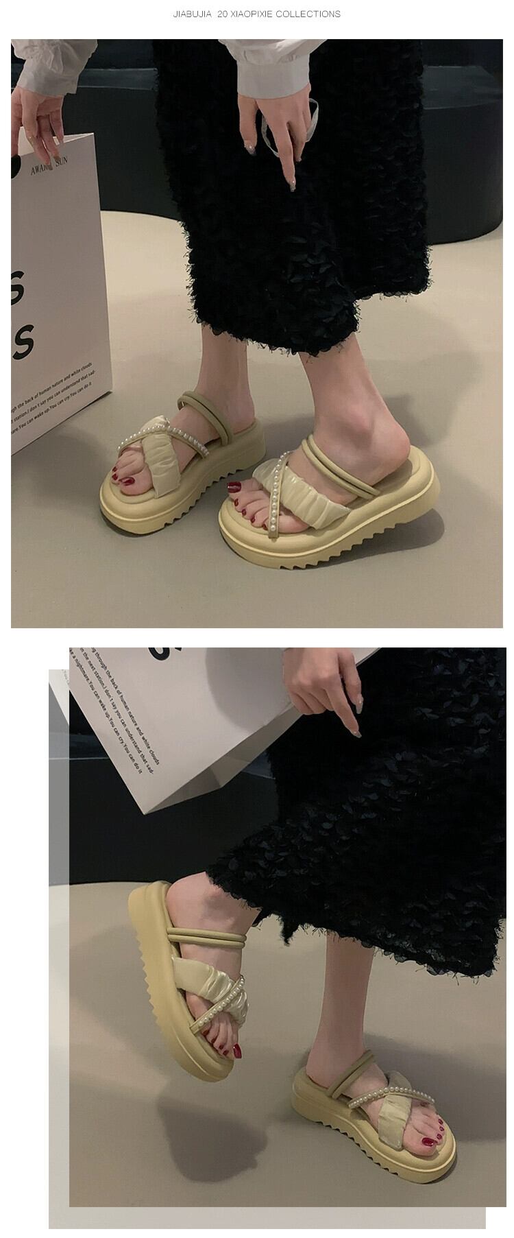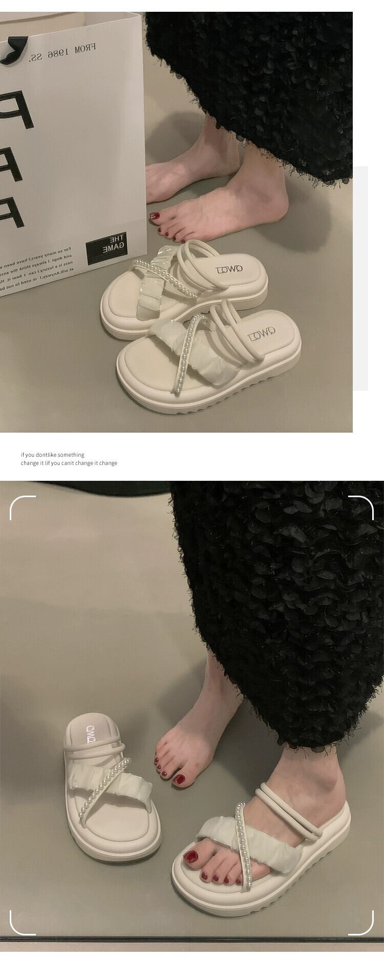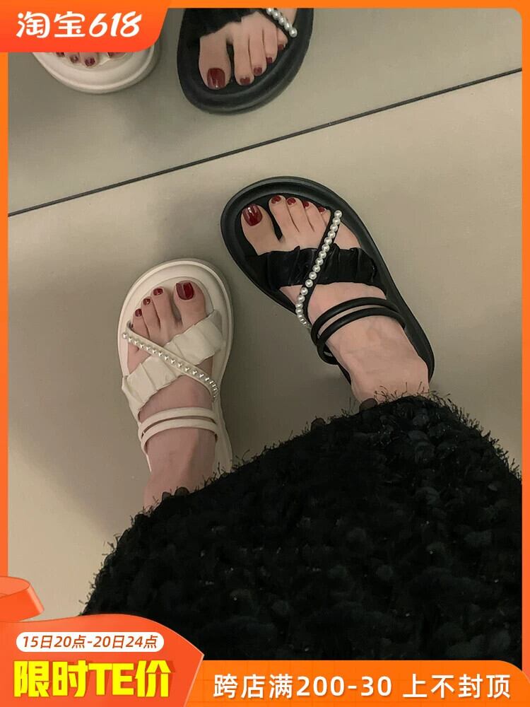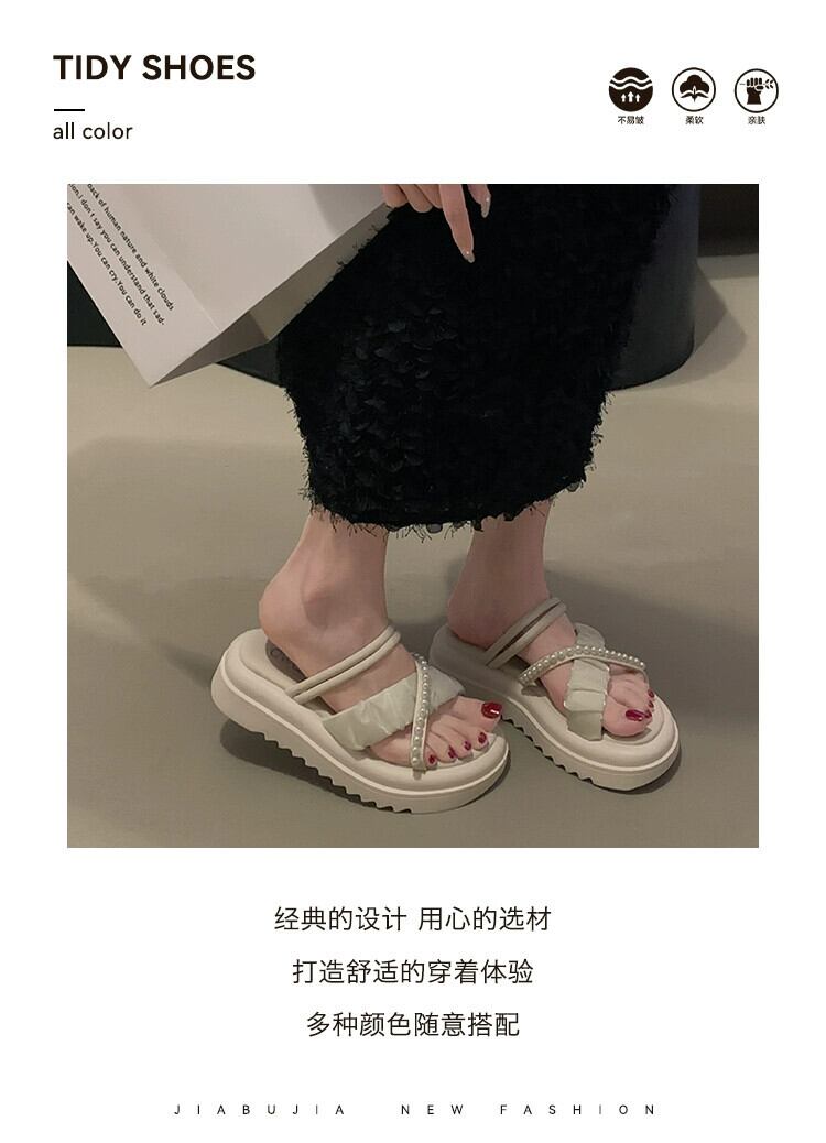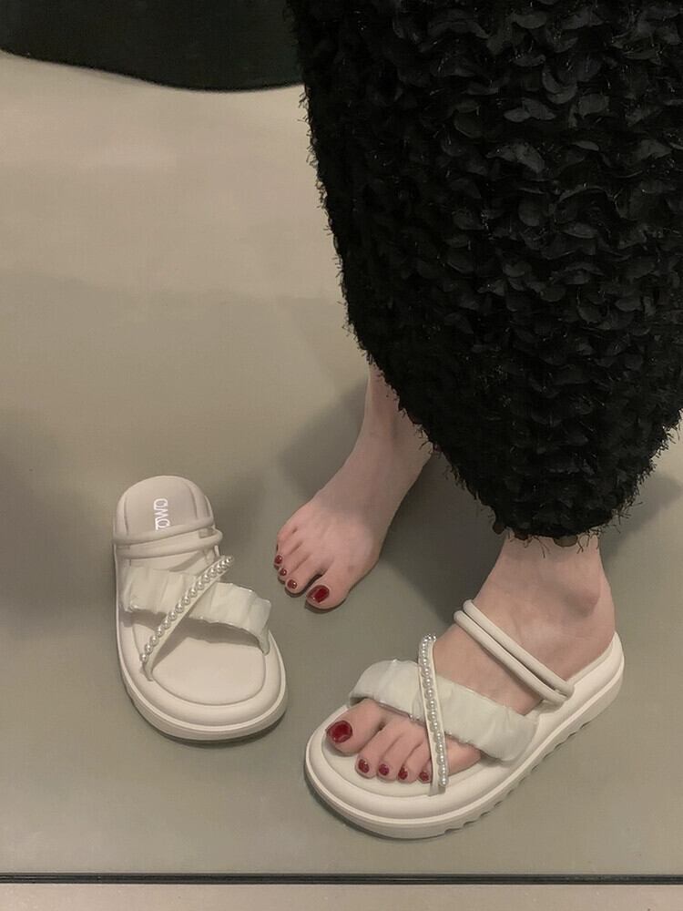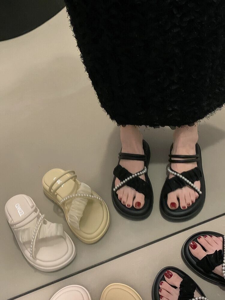 厚底スリッパレディースアウターウェア2023春の新作ファッションオールマッチレトロネットレッドパールクロスサンダルとスリッパトレンド ミュール 靴 シューズ スプリング 春物 真珠 jxjxf26809203528
