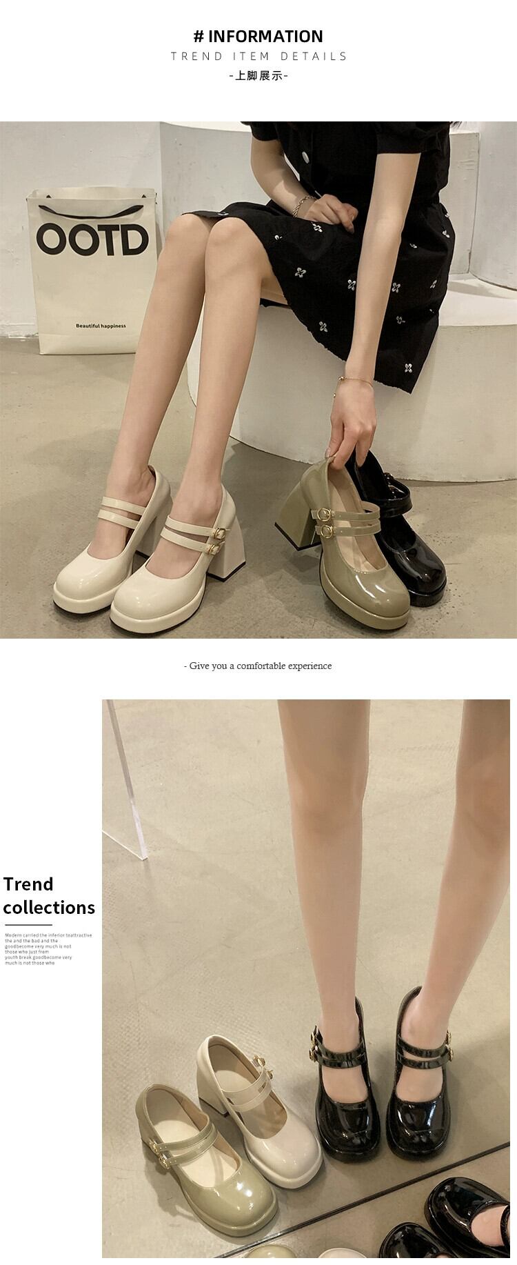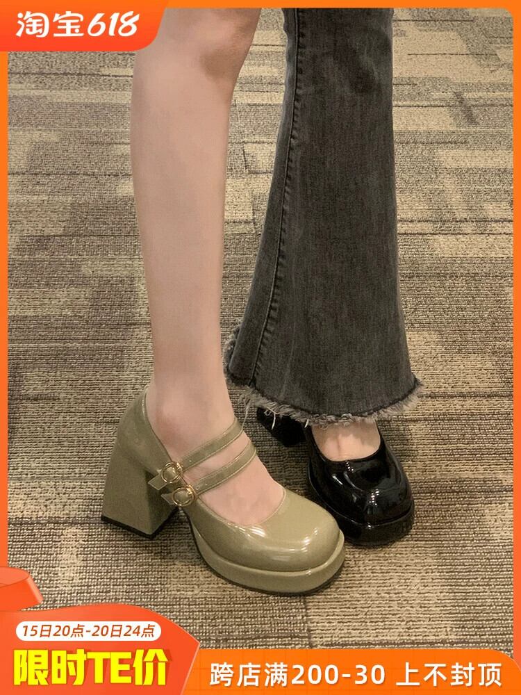 メアリージェーンシューズ女性の 2023 春の新ファッションオールマッチレトロアインスタイルの小さなハイヒールノンスリップレザーシューズ 靴 スプリング 春物 jxjxf1630721381