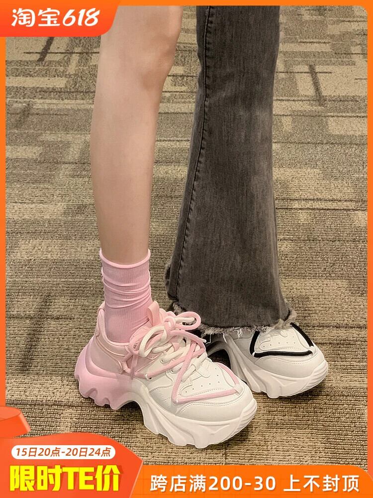 Jiabu 偽厚底カジュアルスポーツシューズの女性の 2023 春の新ファッションオールマッチ通気性増加古い靴の潮流 スプリング 春物 jxjxf10282997691