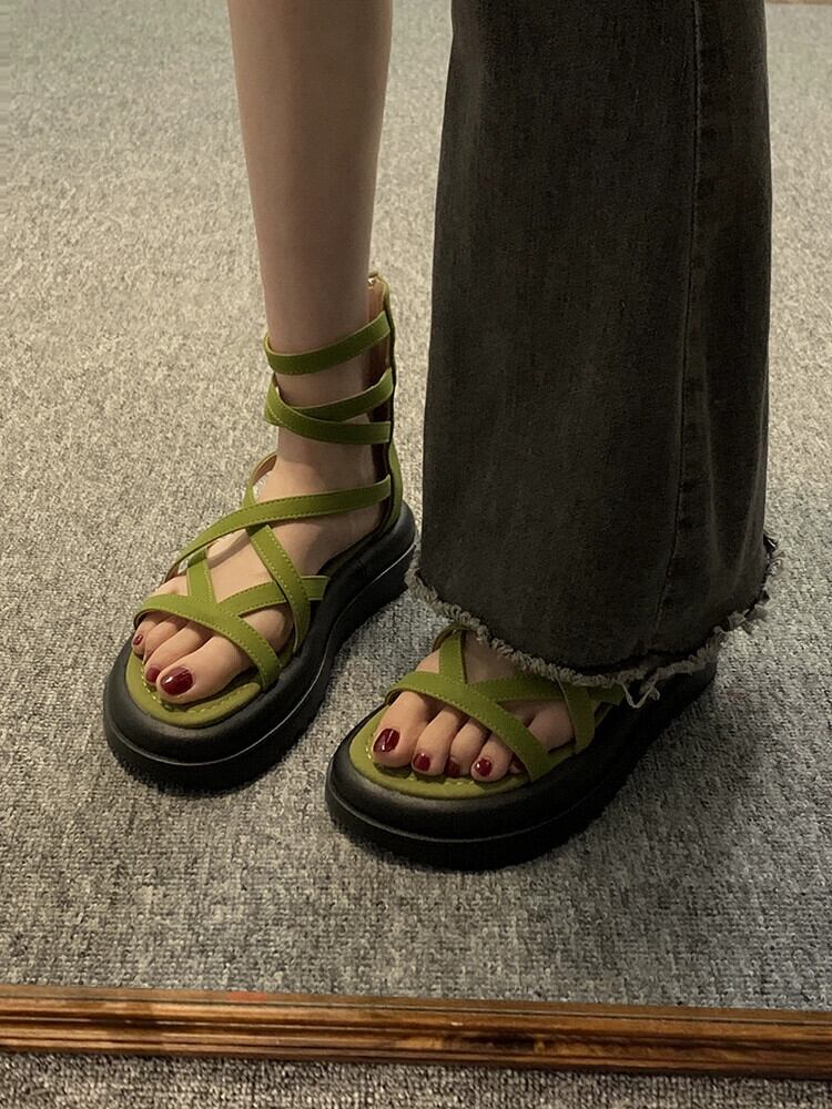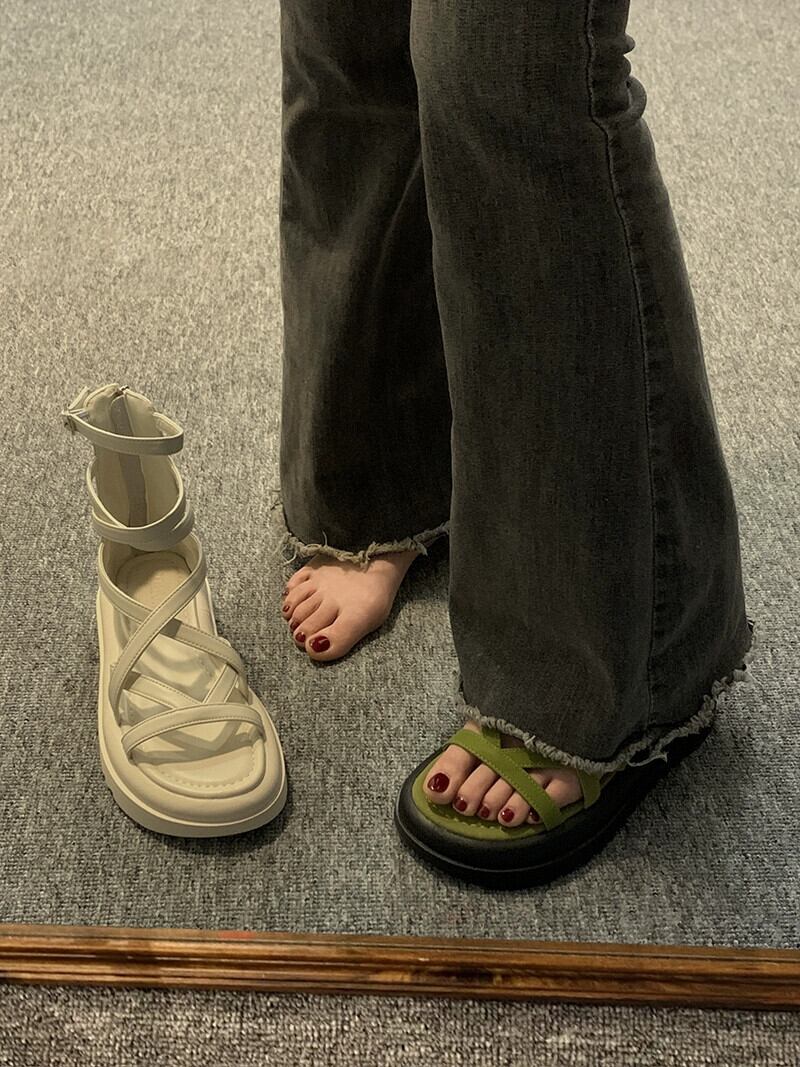 ローマサンダルレディース 2023 春の新作スーパーオールマッチ小型快適厚底滑り止めレトロビーチシューズ 靴 スプリング 春物 jxjxf7975196471