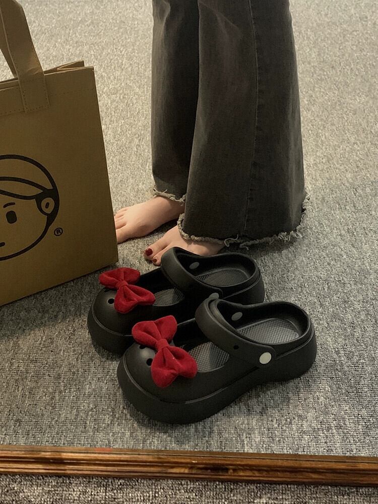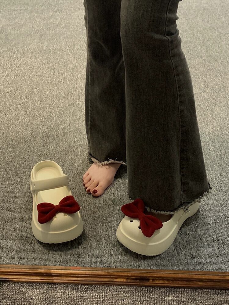 スカートとハーフスリッパ付き女性の 2023 春の新ファッションレトロちょう結び学生厚底サンダルホールシューズ 靴 リボン ミュール スプリング 春物 jxjxf45248369707