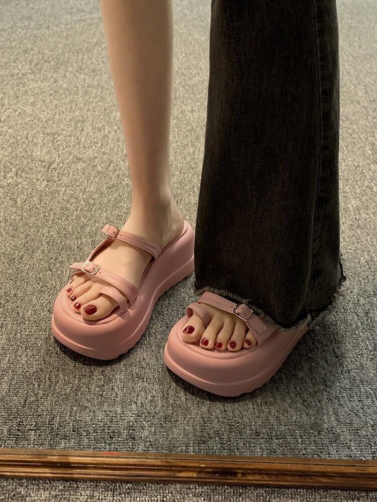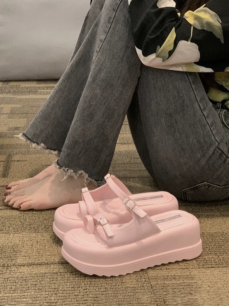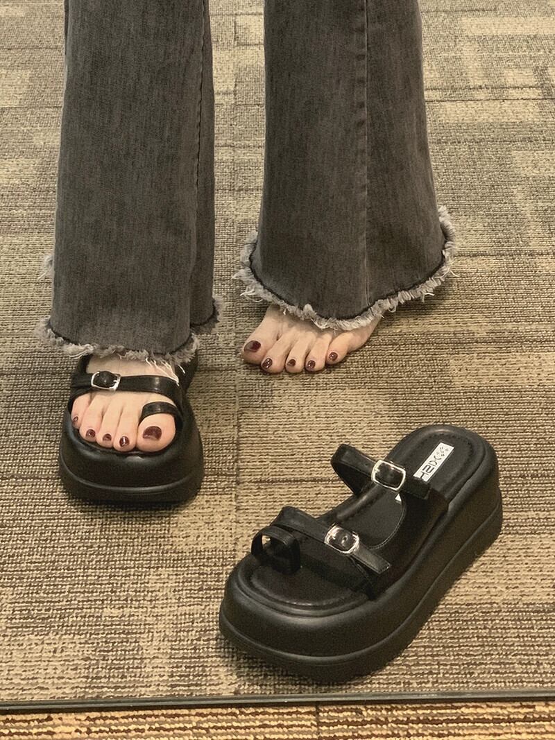 女性のスリッパアウターウェア 2023 春の新ファッション eign スタイルベルトバックルマフィン厚底セットトゥサンダルとスリッパ潮 ミュール 靴 シューズ スプリング 春物 ハーネス jxjxf82016719745
