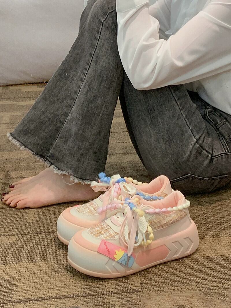 Jiabu 偽カジュアルシューズ女性の 2023 春の新ファッション若者小さな厚底 comtable スポーツシューズ 靴 スプリング 春物 jxjxf18341728318
