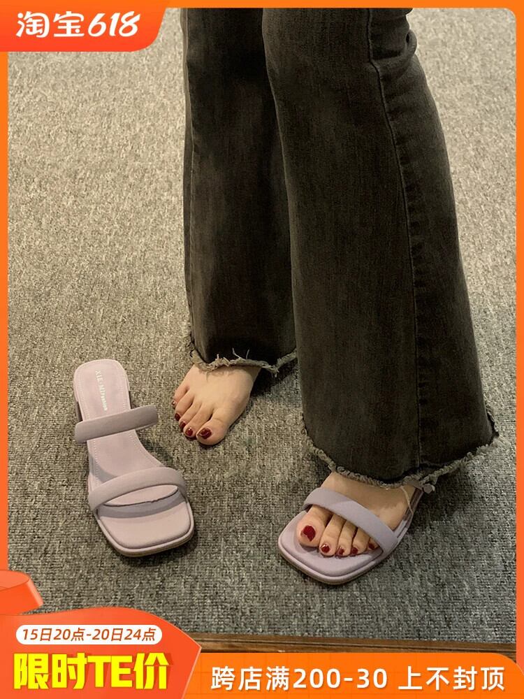 スリッパ アウター レディース 夏の 2023 春の新ファッション オールマッチ 小さなハイヒール Eign スタイル スーパー フェアリー ビーチサンダル 靴 シューズ ミュール スプリング 春物 サマー 夏物 jxjxf28680729726