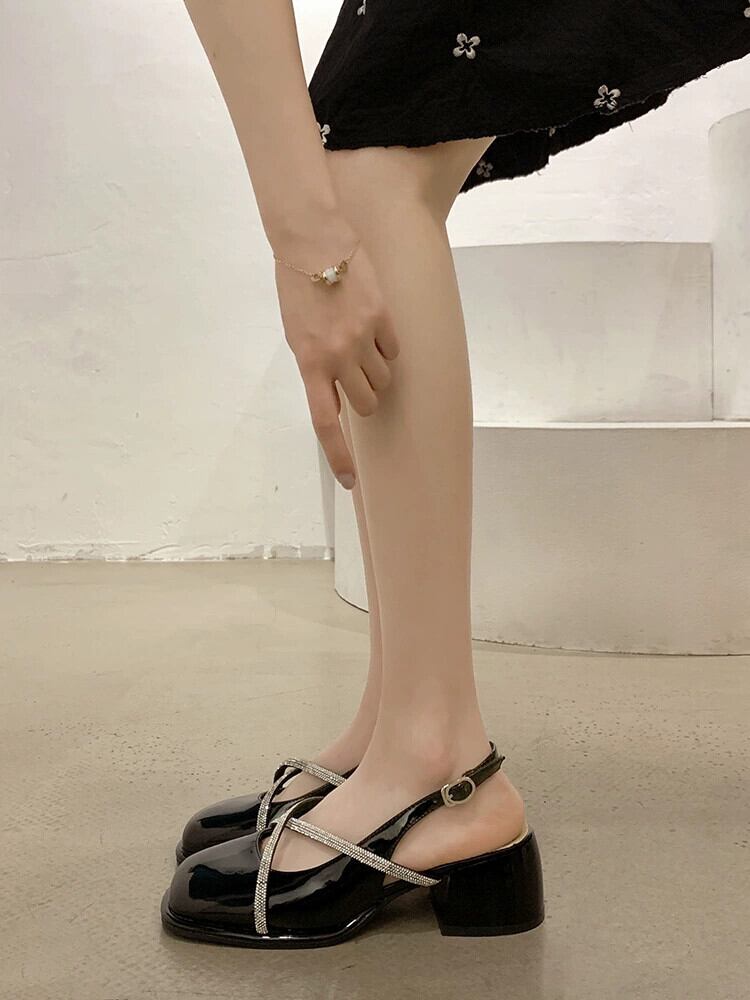 包頭サンダル女性の 2023 春の新ファッションオールマッチアインスタイルラインストーンとスカート太いヒールメリージェーン靴トレンド シューズ スプリング 春物 jxjxf46353663417