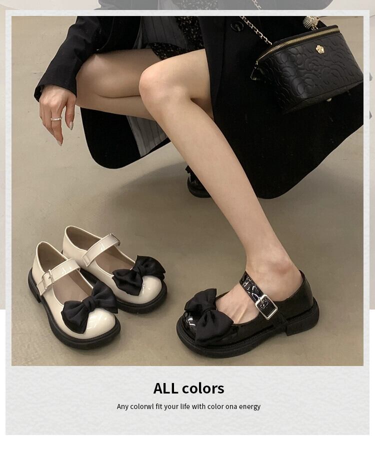 ese シングルシューズ女性の 2023 春の新ファッションオールマッチレトロ弓太いヒールノンスリップ甘い革靴 リボン 大人ガーリー スウィート キュート カジュアル スプリング 春物 レザー jxjxf7992966362
