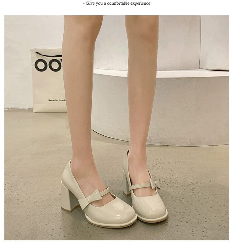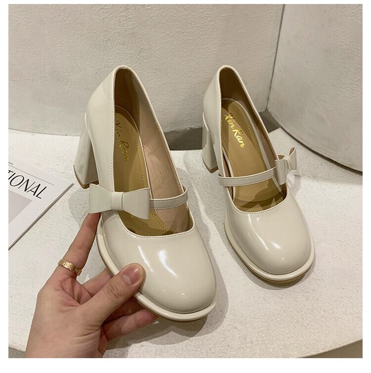 ese シングルシューズの女性の 2023 春の新ファッションオールマッチフレンチレトロリボンチャンキーヒールメリージェーンシューズトレンド 靴 スプリング 春物 jxjxf98690227729