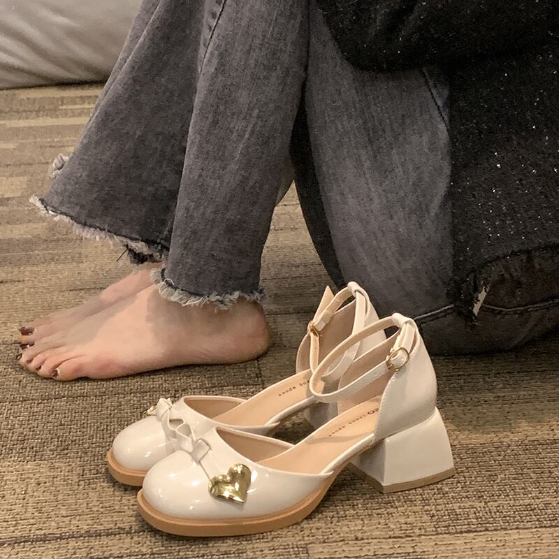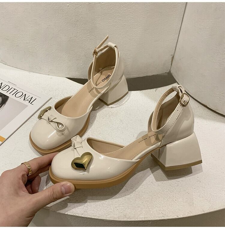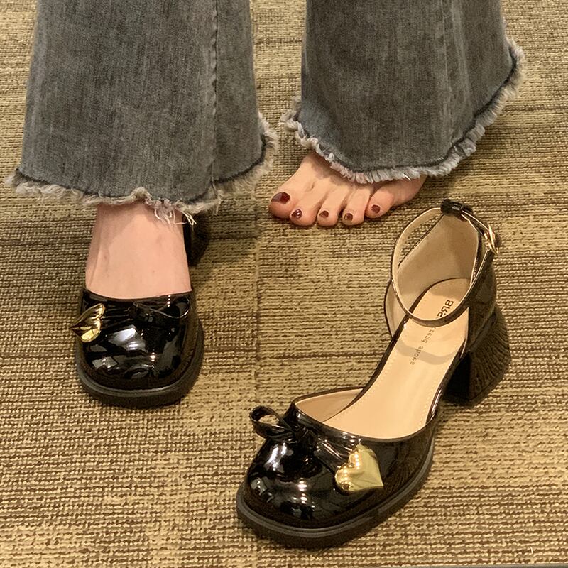 太いヒールシングルシューズレディース 2023 春の新ファッションオールマッチフレンチレトロ気質ラウンドトゥメリージェーン革靴 スプリング 春物 ラウンドトー レザー jxjxf20609194025