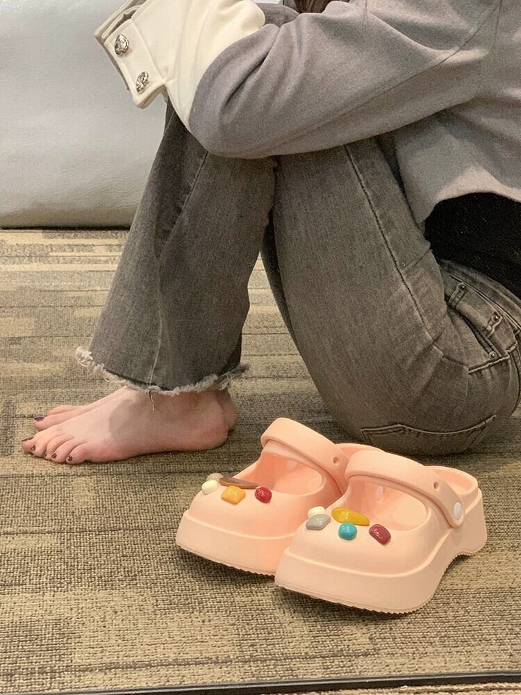 ネットレッドスリッパレディースアウター 2023 夏の新かわいいオールマッチ厚底スリッパカジュアルビーチシューズホールシューズ 靴 ミュール 大人ガーリー スウィート キュート サマー 夏物 jxjxf62268753424