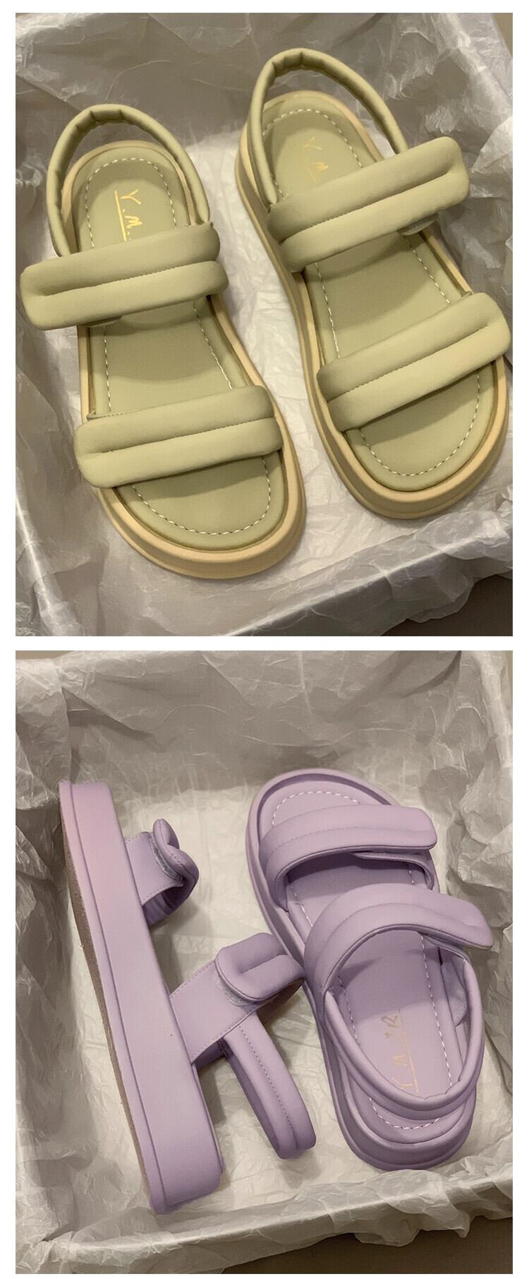 一言サンダルレディース 2023 春の新作ファッションオールマッチレトロアインスタイル厚底ベルクロサンダルとスリッパトレンド ミュール 靴 シューズ スプリング 春物 jxjxf68069082278