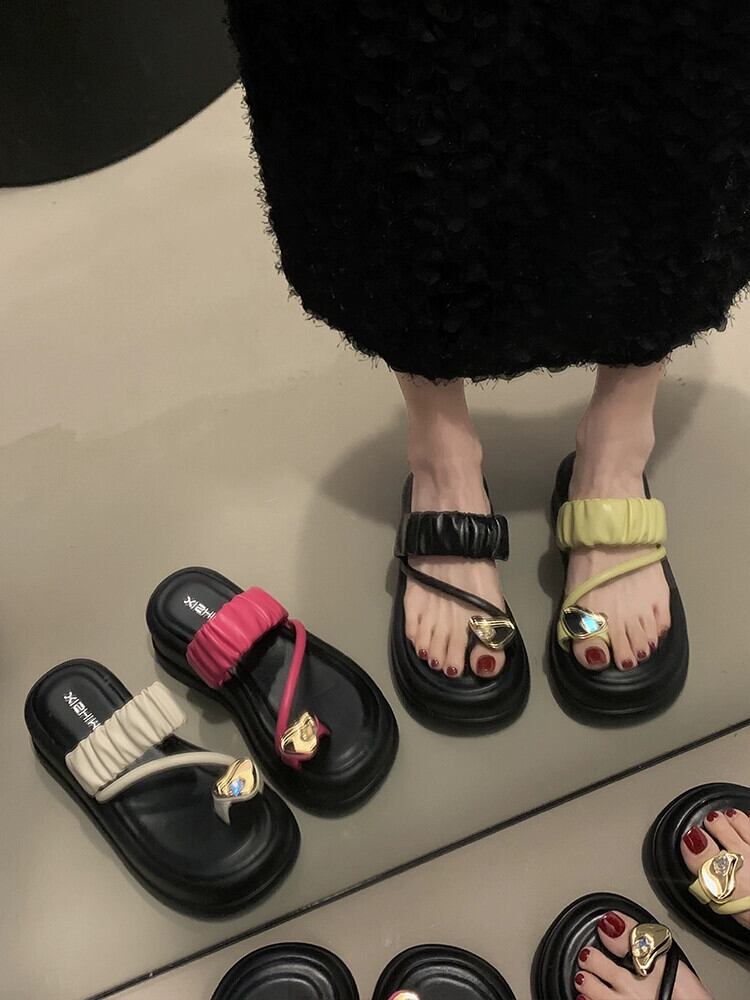 厚底スリッパレディース 2023 夏の新しいファッション外出オールマッチレトロメタルラインストーンサンダルとスリッパトレンド ミュール 靴 シューズ サマー 夏物 jxjxf99669814749