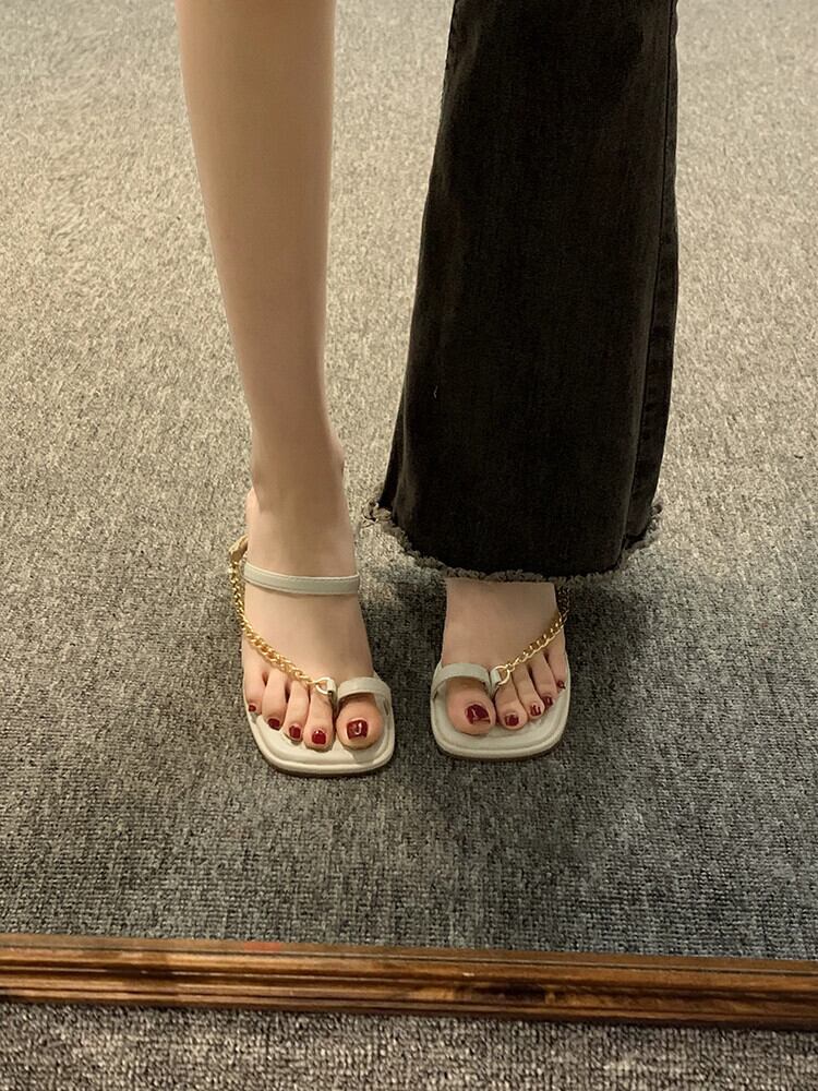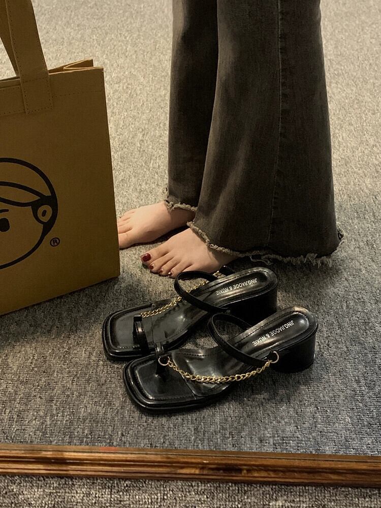 Jiabu フェイクセットトゥスリッパレディースアウター 2023 春の新ファッションオールマッチフレンチメタルチェーン厚底サンダル ミュール 靴 シューズ スプリング 春物 jxjxf54878766541