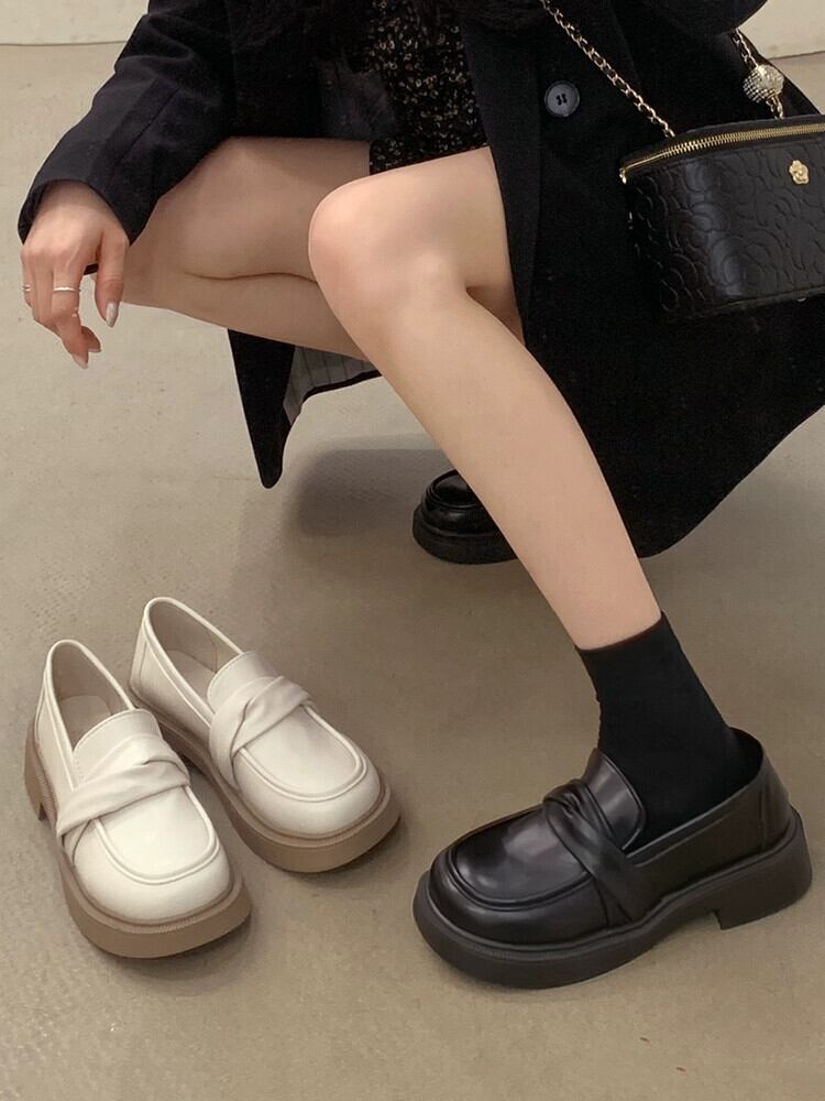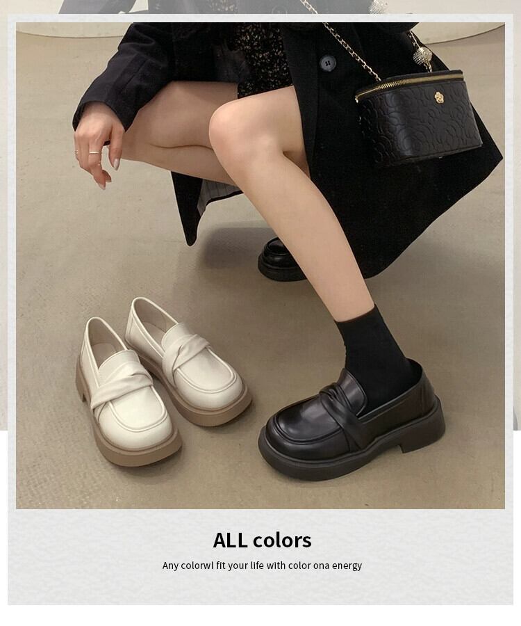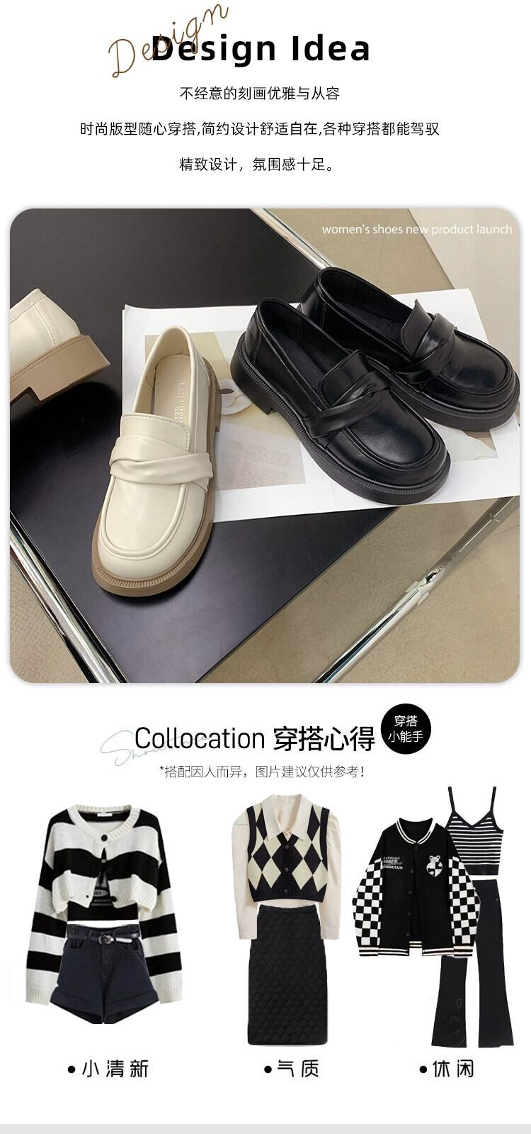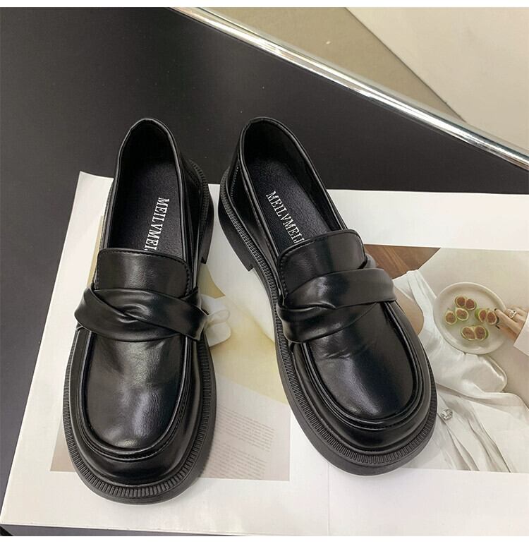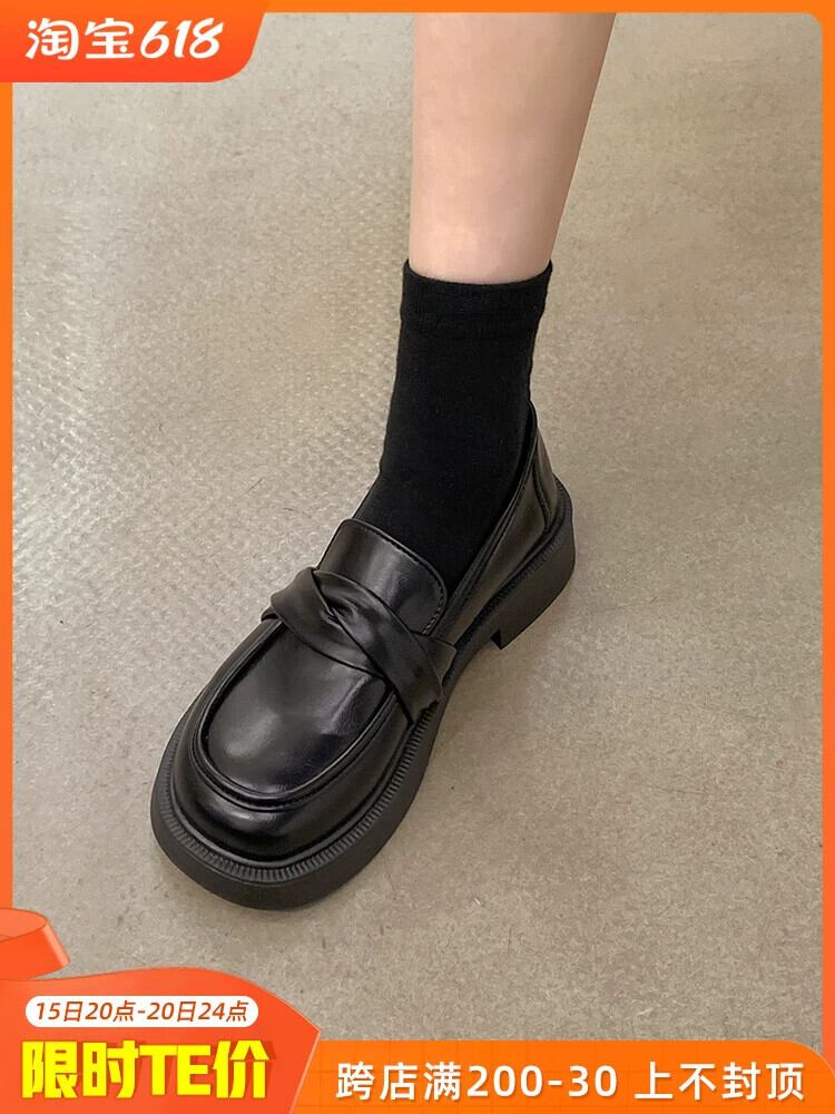 英国スタイルのシングルシューズの女性の 2023 春の新ファッションオールマッチ通勤太いヒール滑り止め快適ラウンドトゥローファー 靴 スプリング 春物 ラウンドトー jxjxf35191257215