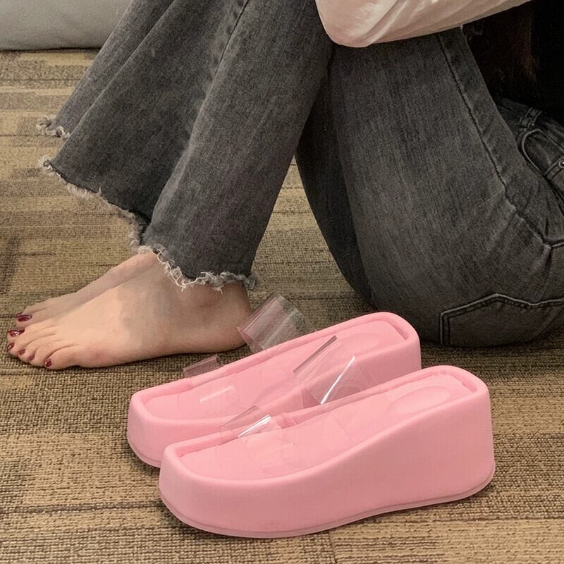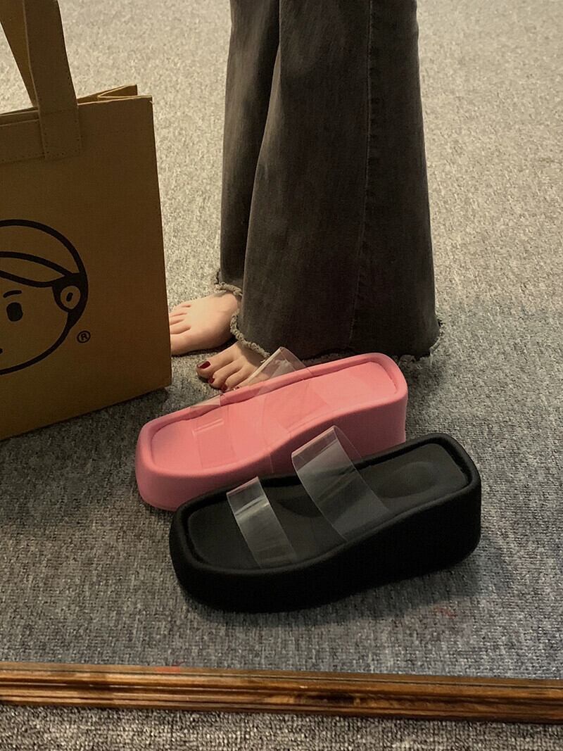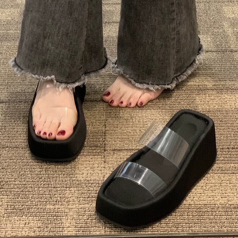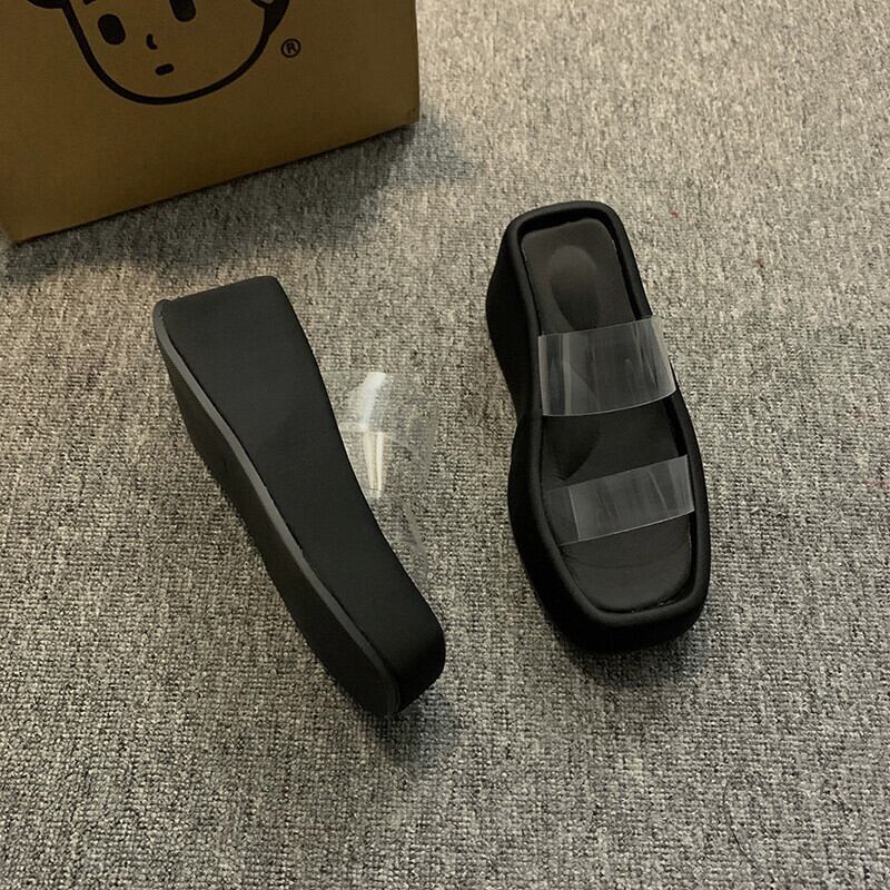 Jiabu 偽ウェッジサンダル 2023 夏の新ファッションオールマッチ小さな高透明一言スリッパ ミュール 靴 シューズ サマー 夏物 jxjxf9121024216