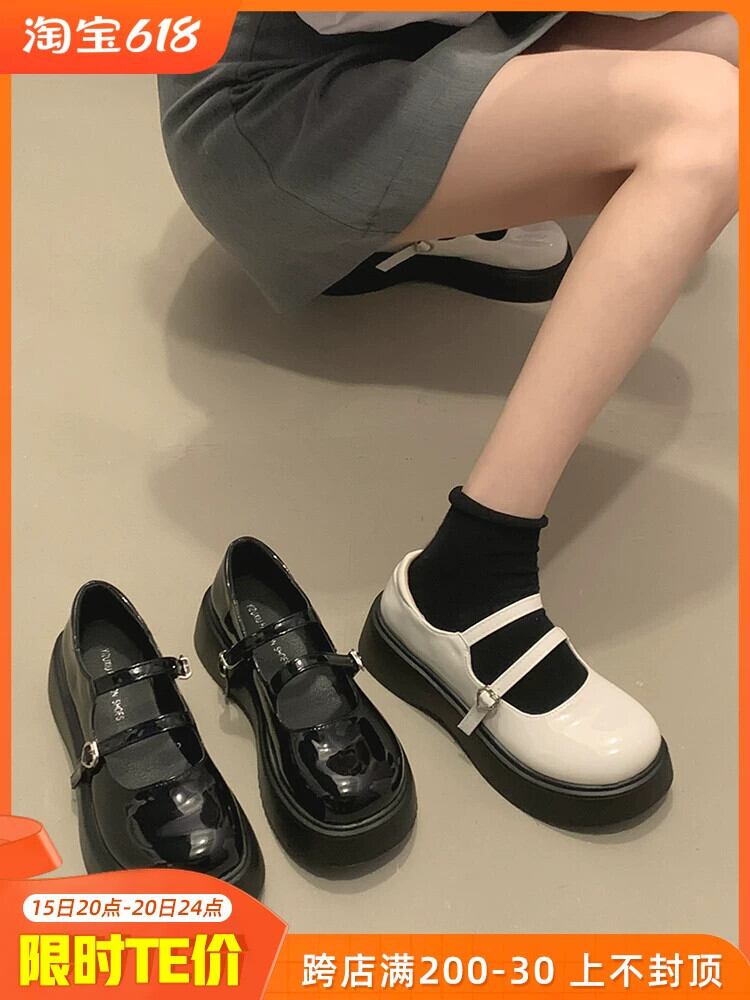 ese メリージェーンシューズ女性の 2023 春の新しいファッションオールマッチ小さな厚底滑り止め甘い革靴 大人ガーリー スウィート キュート カジュアル スプリング 春物 レザー jxjxf60328968197