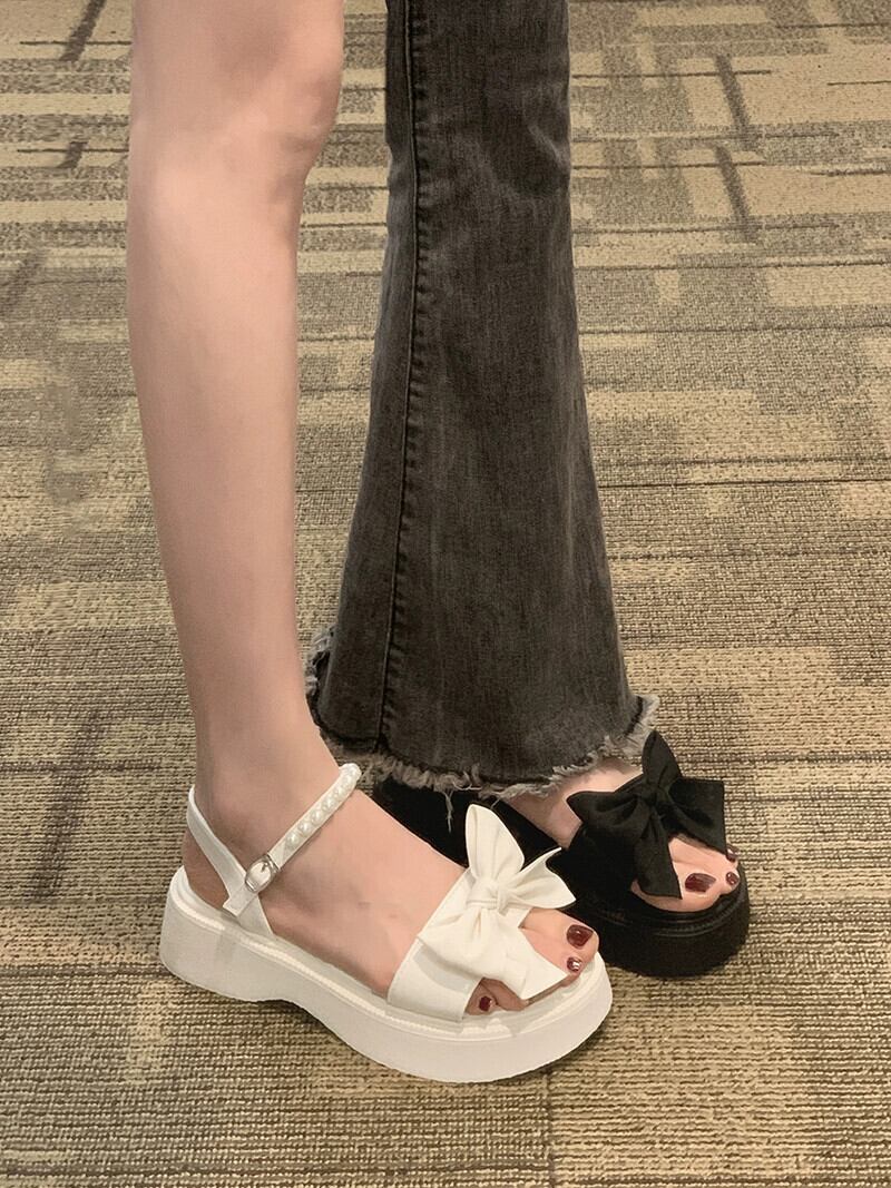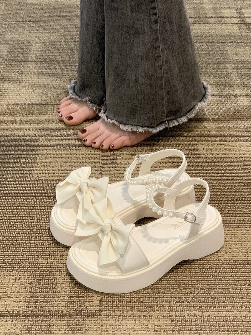 インターネットセレブサンダル女性の 2023 春の新ファッションオールマッチ eign スタイル弓 comtable 厚底ノンスリップビーチシューズ 靴 リボン スプリング 春物 jxjxf79523672970