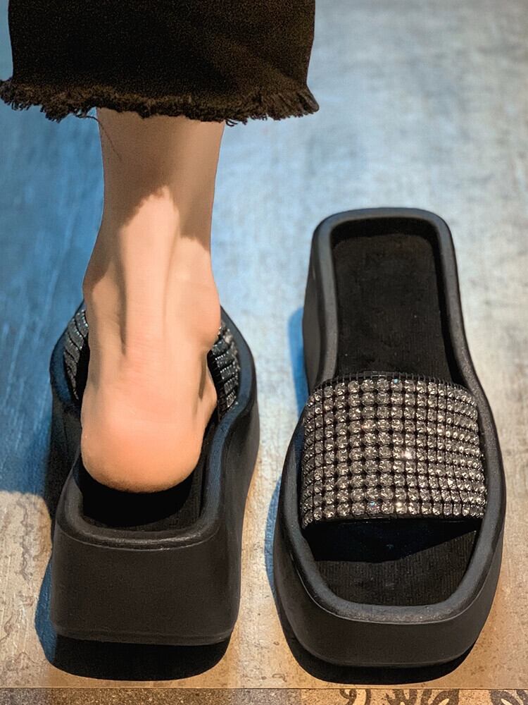 インターネットセレブスリッパレディースアウターウェア 2023 春の新ファッション eign スタイルラインストーンマフィン厚底ワードサンダルとスリッパトレンド ミュール 靴 シューズ スプリング 春物 jxjxf61049031286