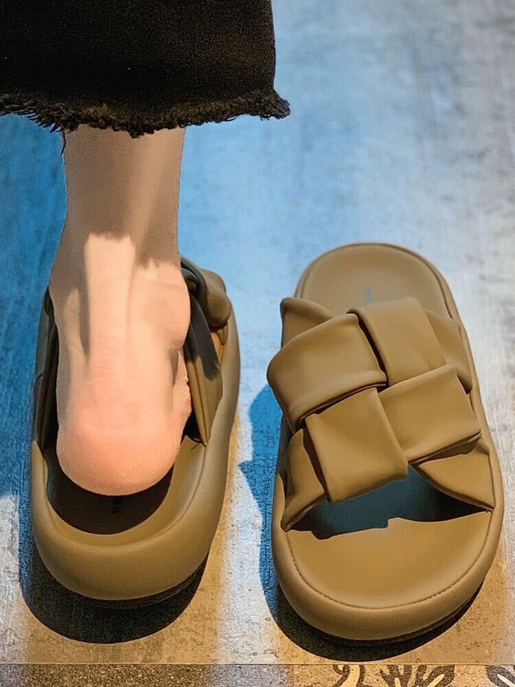 女性のスリッパ 2023 春の新ファッションオールマッチレトロ織り厚底ノンスリップ comtable サンダルとスリッパ ミュール 靴 シューズ スプリング 春物 jxjxf1729127748