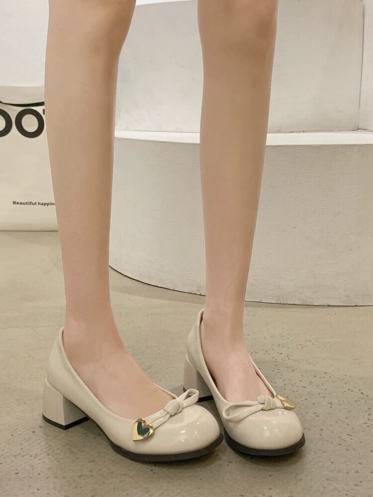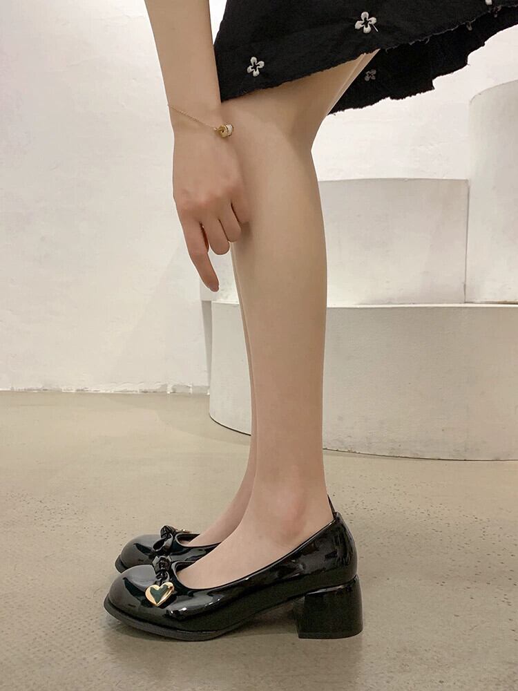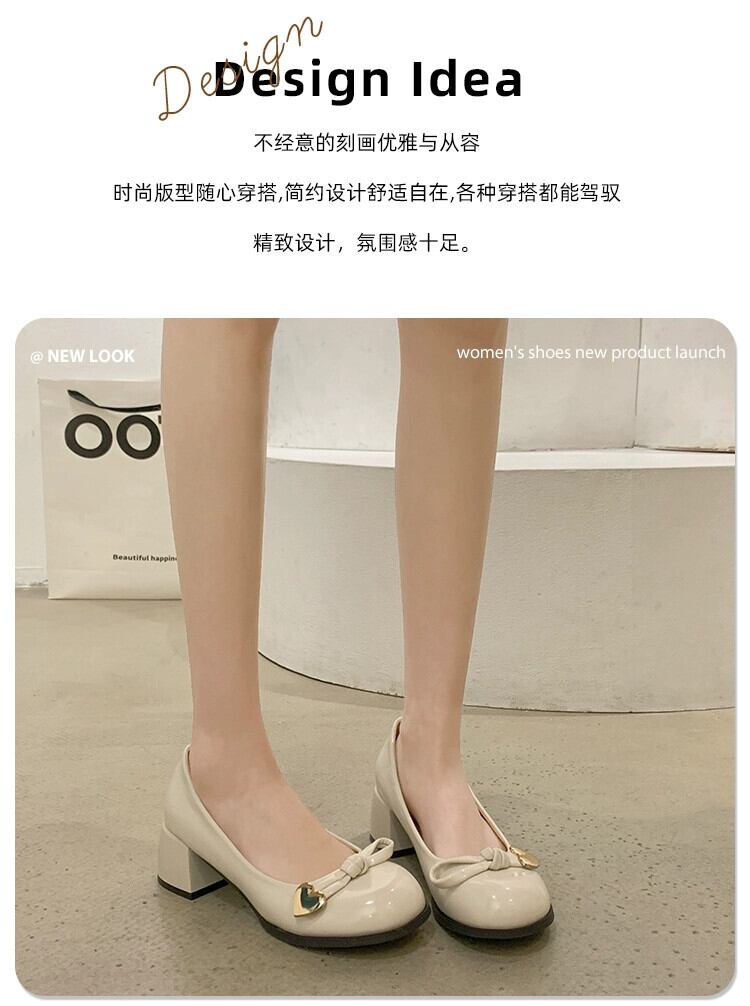Jiabu フェイクスタイルシングルシューズ女性の 2023 春の新オールマッチ気質レトロチャンキーヒール滑り止めラウンドトゥ小さな革靴 スプリング 春物 レザー jxjxf57229750311