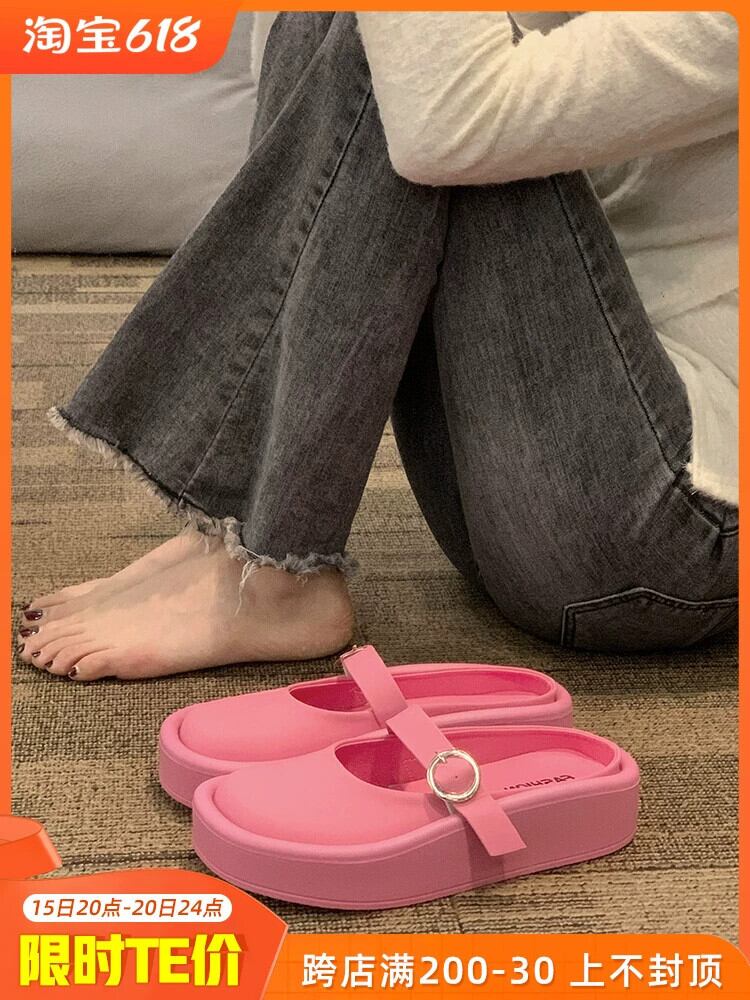 Jiabu 偽包頭ハーフスリッパ女性の 2023 夏の新ファッションオールマッチレトロ怠惰な 1 ペダル厚底スリッパ ミュール 靴 シューズ サマー 夏物 jxjxf51648688798
