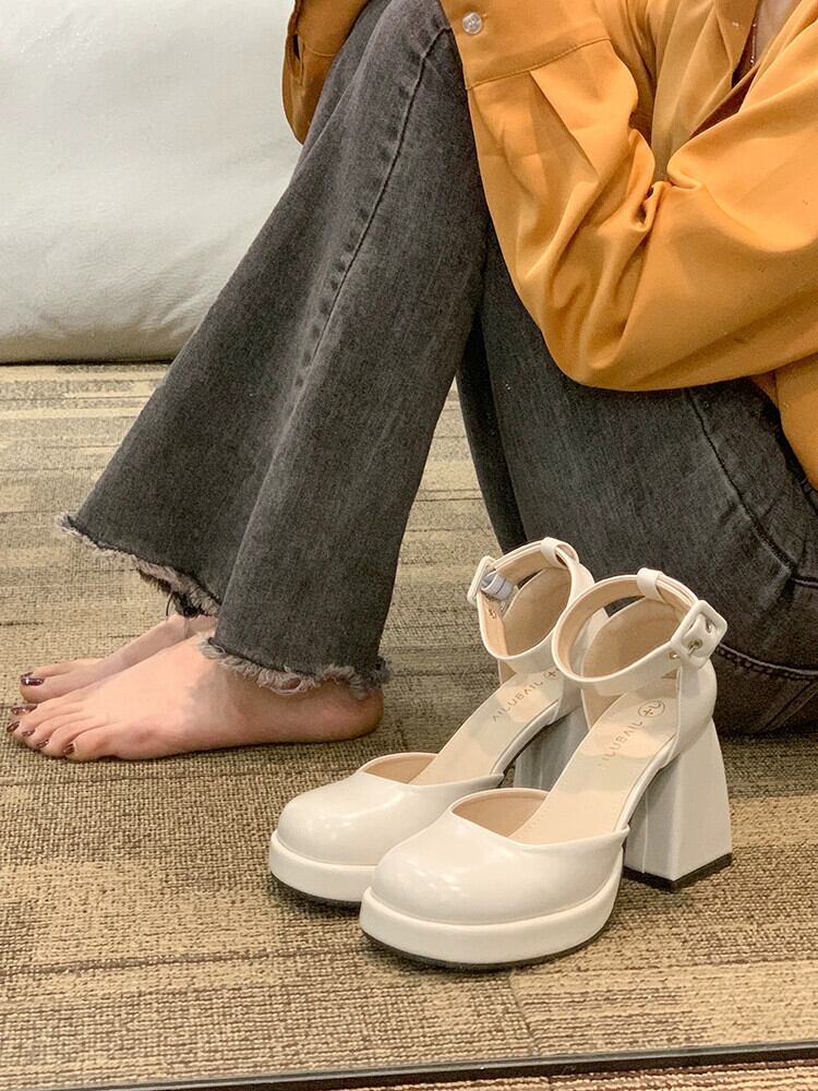 インターネットセレブのシングルシューズの女性の 2023 年春の新ファッションオールマッチレトロベルトバックルハイヒール甘いクールメリージェーンシューズトレンド 靴 大人ガーリー スウィート キュート カジュアル スプリング 春物 ハーネス jxjxf13363974122