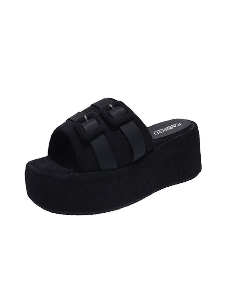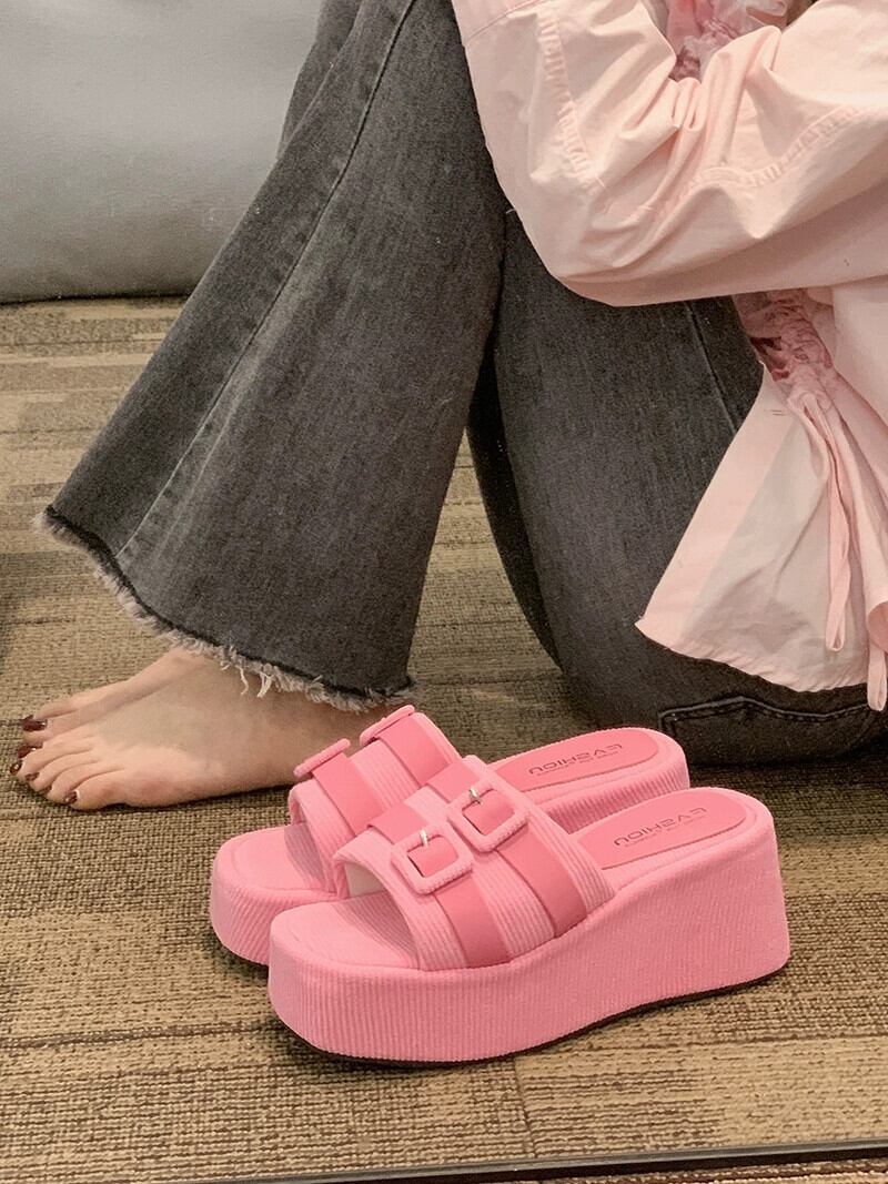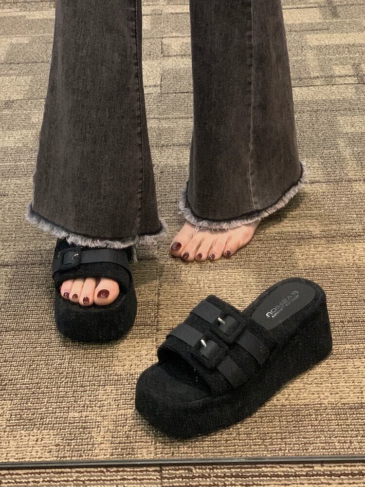Jiabu 偽サンダルとスリッパの女性のアウターウェア 2023 春の新ファッションオールマッチレトロベルトバックルウェッジビーチサンダル ミュール 靴 シューズ スプリング 春物 ハーネス jxjxf65689604923