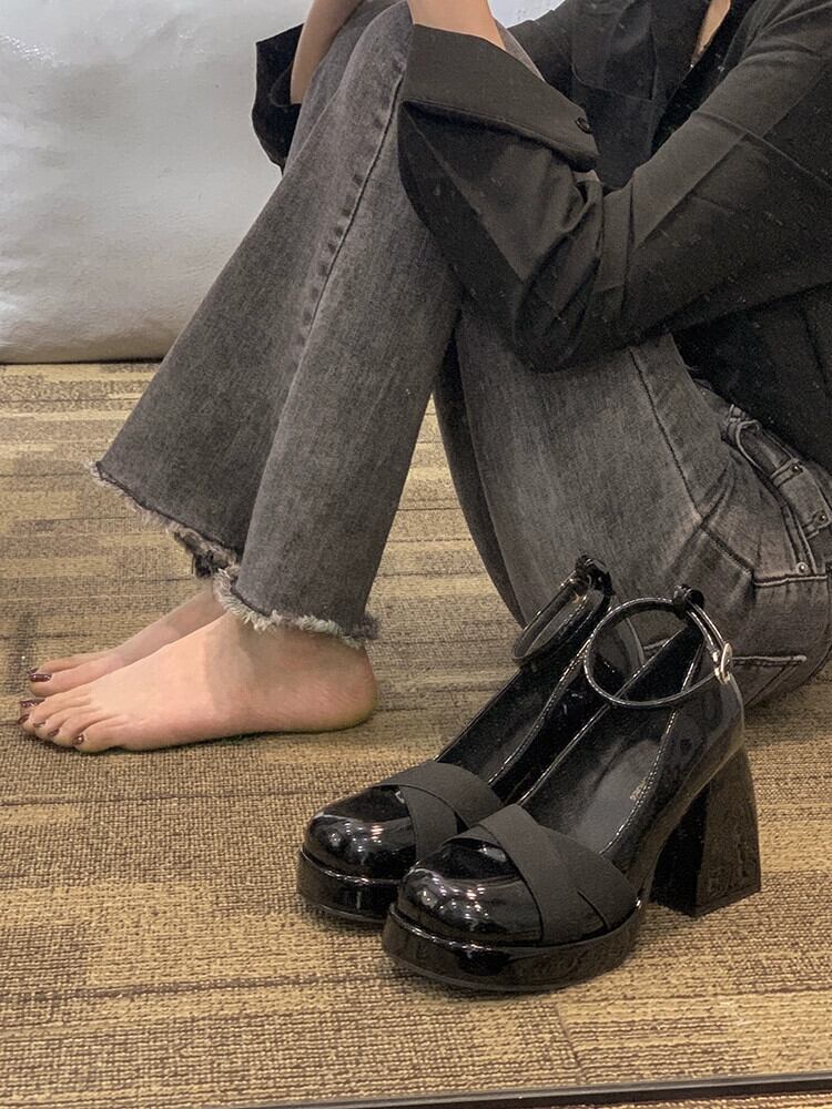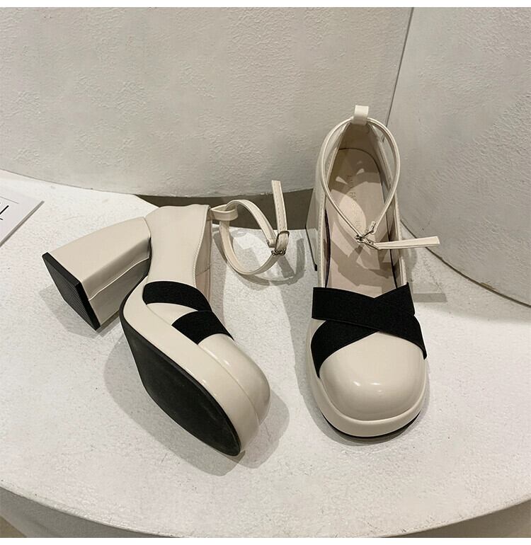靴の女性のシングルシューズ 2023 春の新フレンチレトロオールマッチ小さなハイヒールアインスタイルメリージェーンシューズ スプリング 春物 jxjxf43592574400