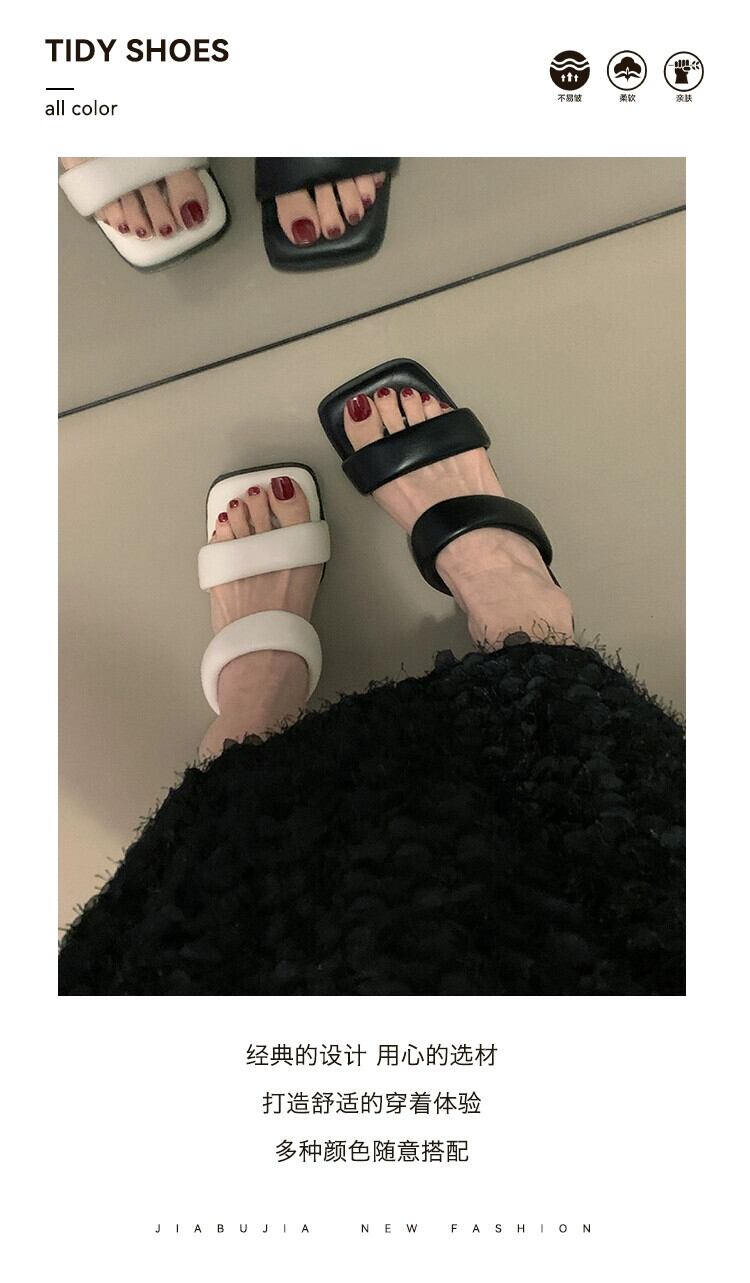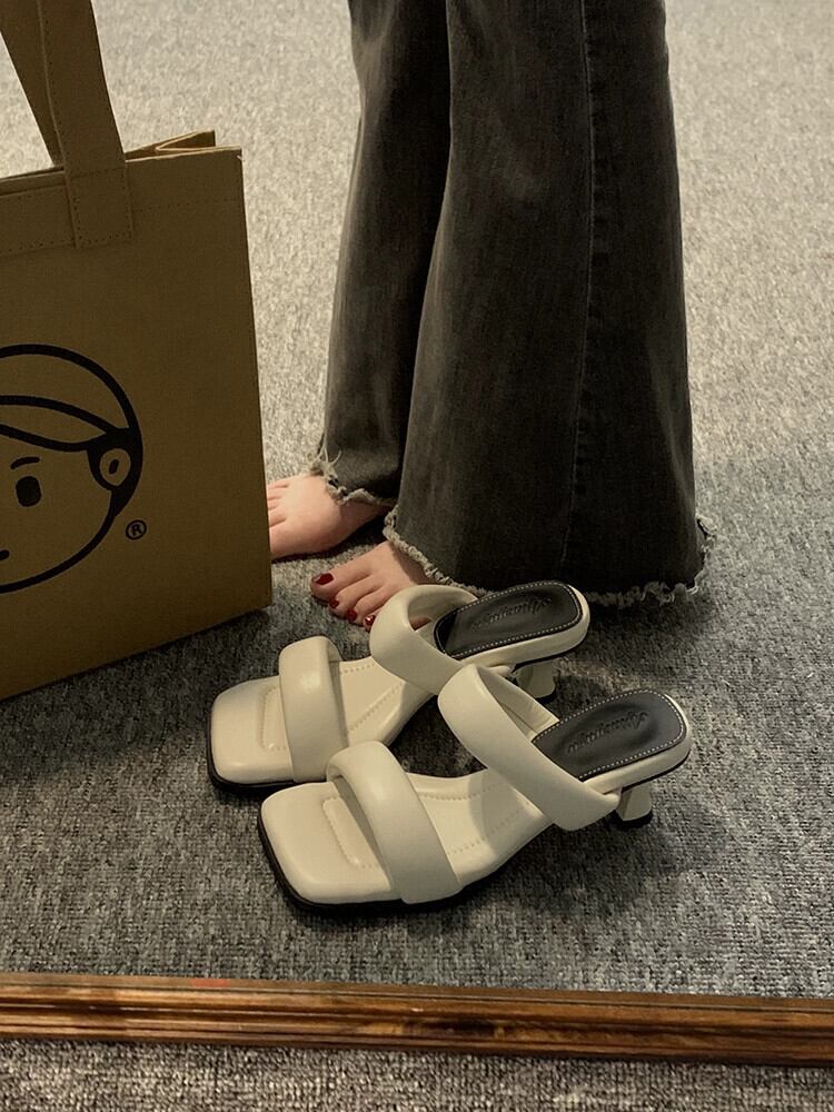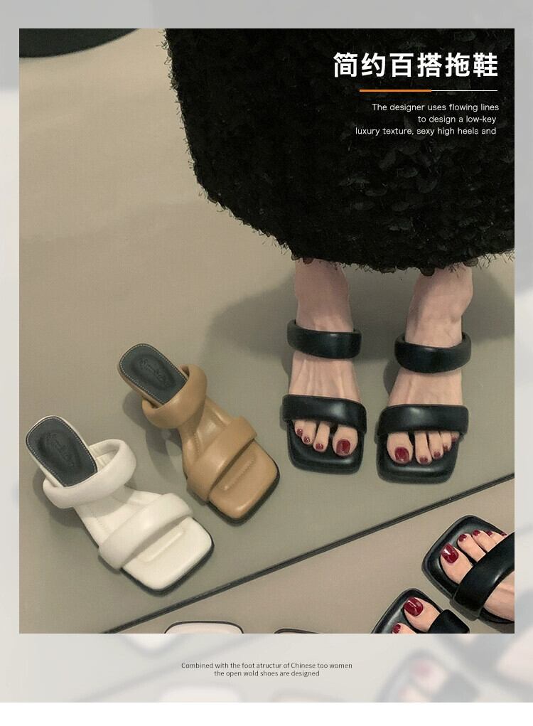 スリッパ女性のアウターウェア 2023 夏の新しいファッションネットレッドオールマッチレトロスクエアトゥスティレットサンダルとスリッパトレンド ミュール 靴 シューズ サマー 夏物 スクウェア jxjxf47138250685