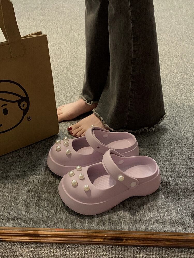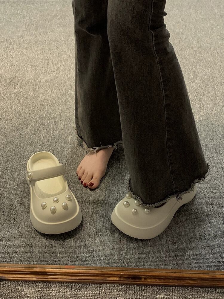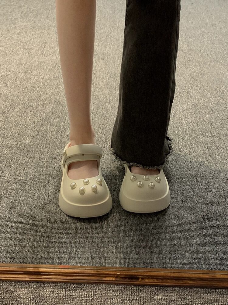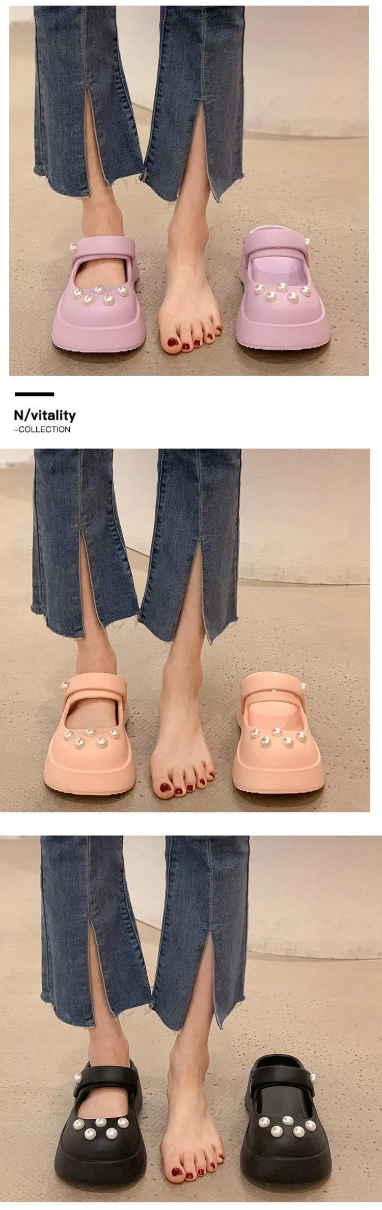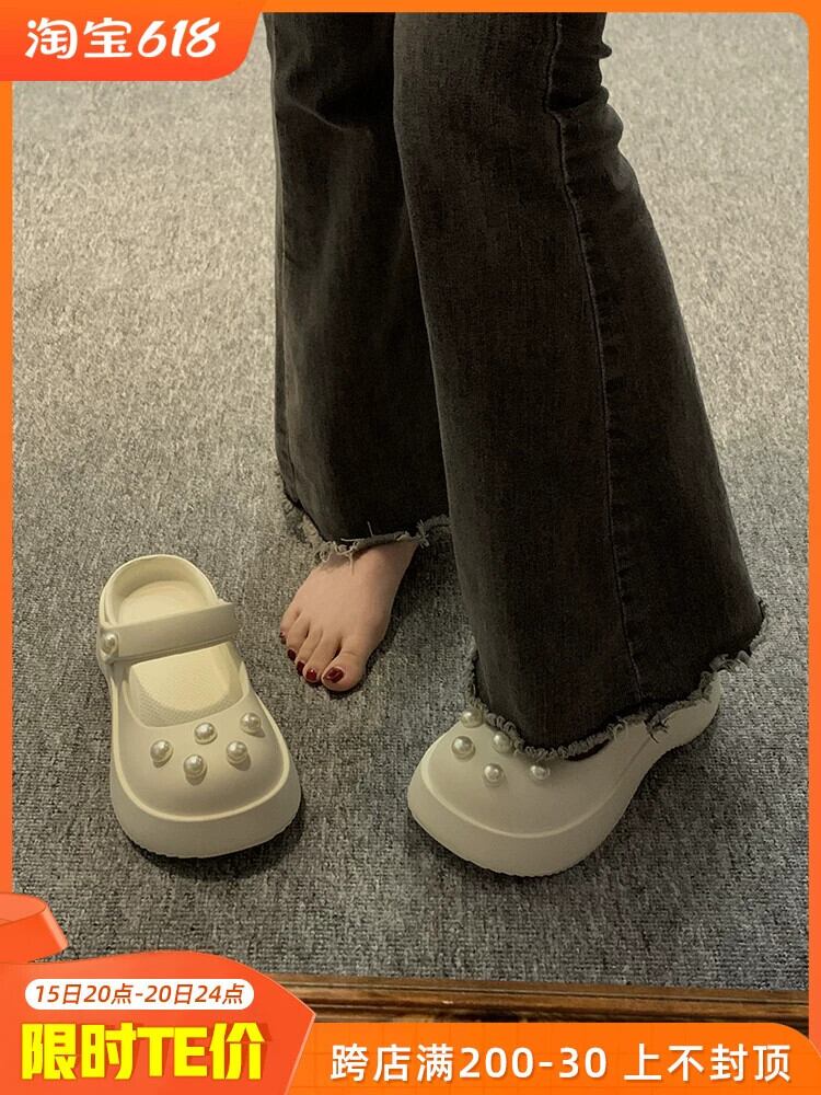 ホールシューズの女性のアウターウェア 2023 春の新ファッションオールマッチカジュアルネットレッド厚底滑り止め包頭ドラッグ潮 靴 スプリング 春物 jxjxf3925165977