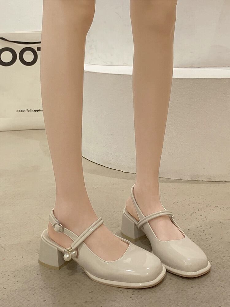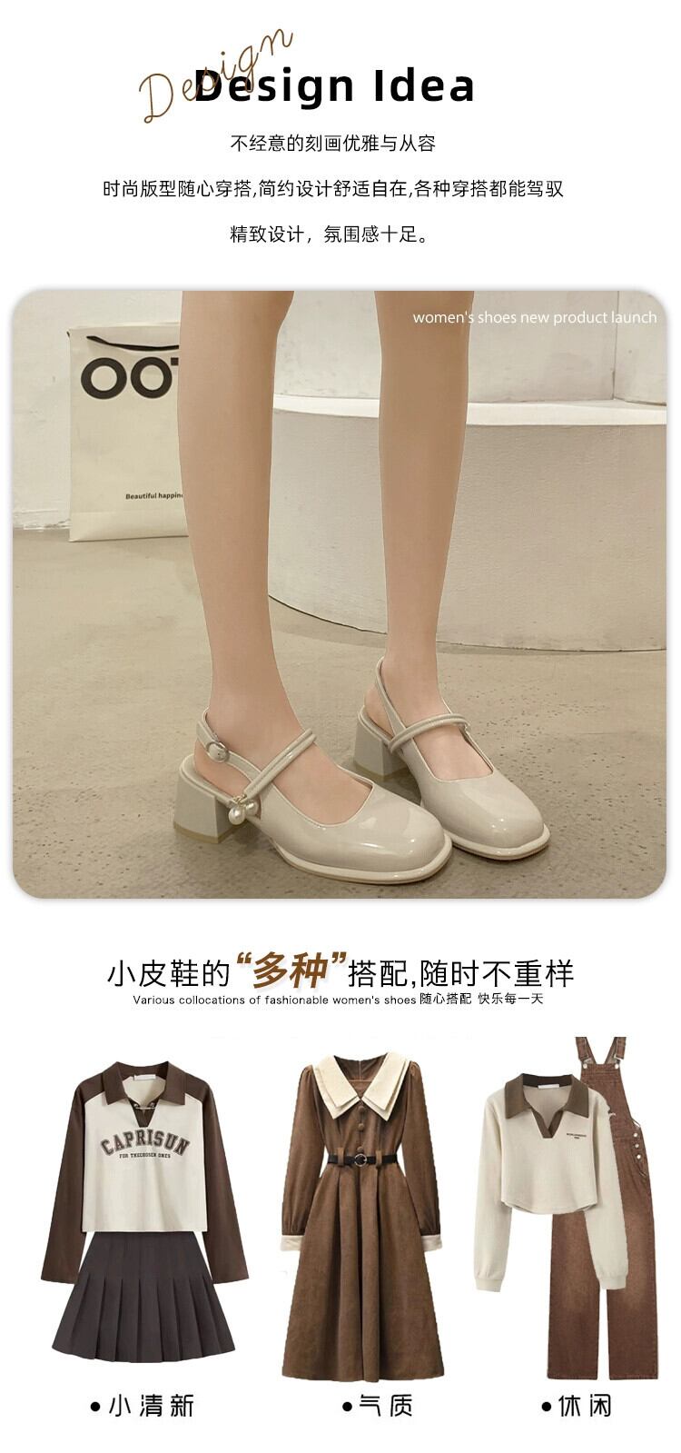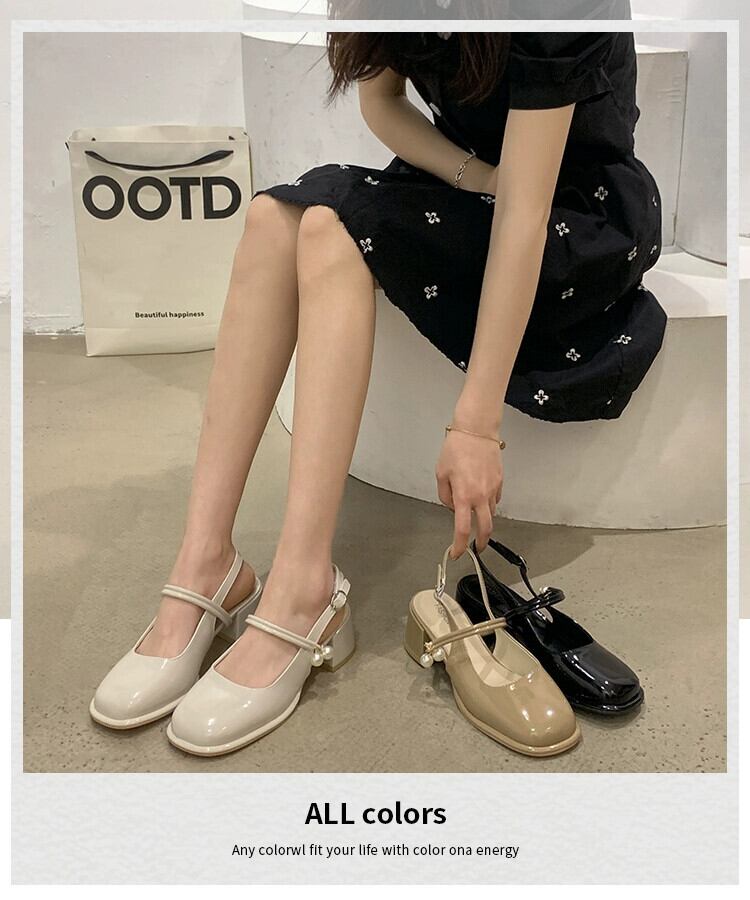 包頭サンダルの女性の 2023 春の新ファッションオールマッチレトロパール厚いヒール滑り止めスカート付き小さな革靴 シューズ スプリング 春物 レザー 真珠 jxjxf2431359448