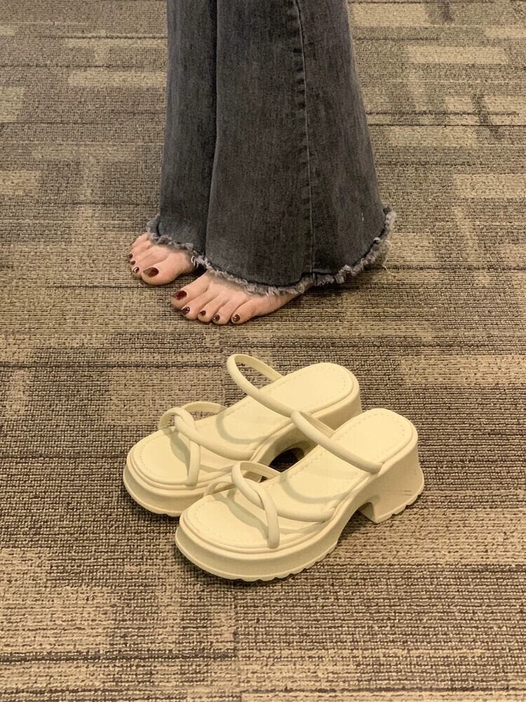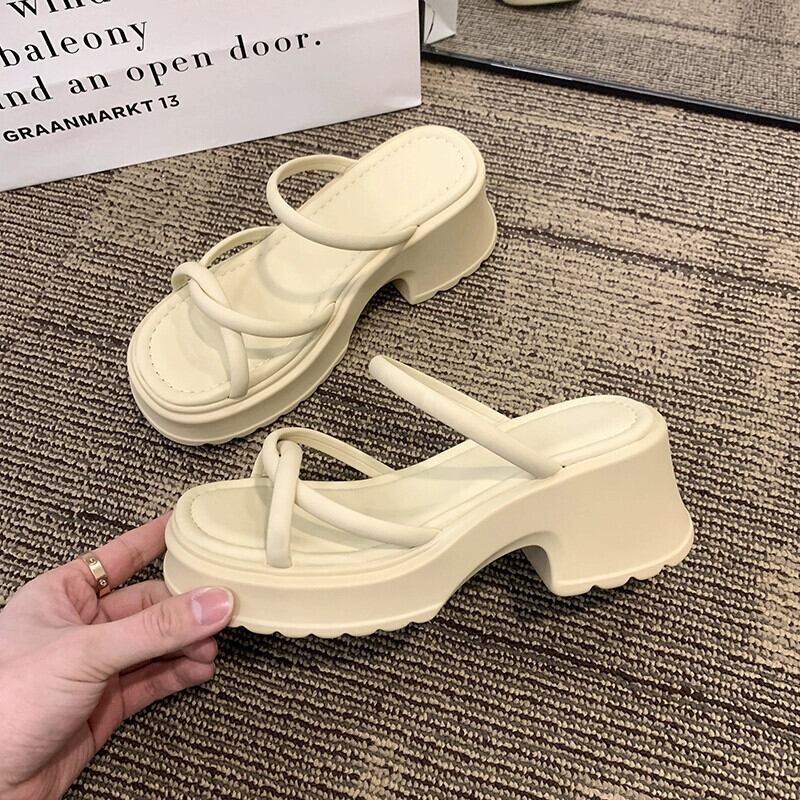 2023 年春のアウターウェアレディーススリッパ新しいファッションオールマッチ小さな優しいレトロ厚いヒール滑り止めビーチサンダル ミュール 靴 シューズ スプリング 春物 jxjxf84543956080