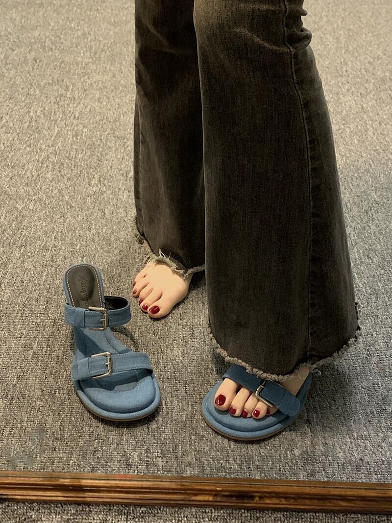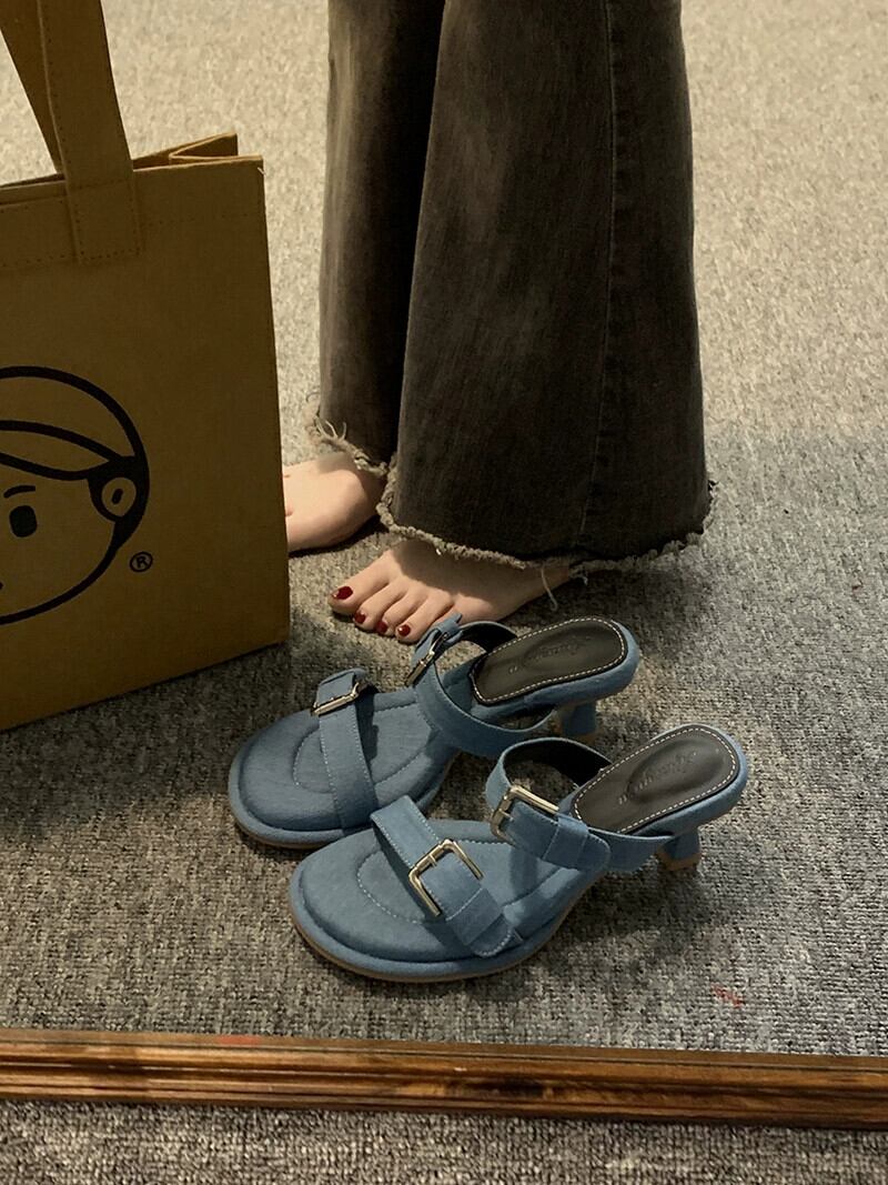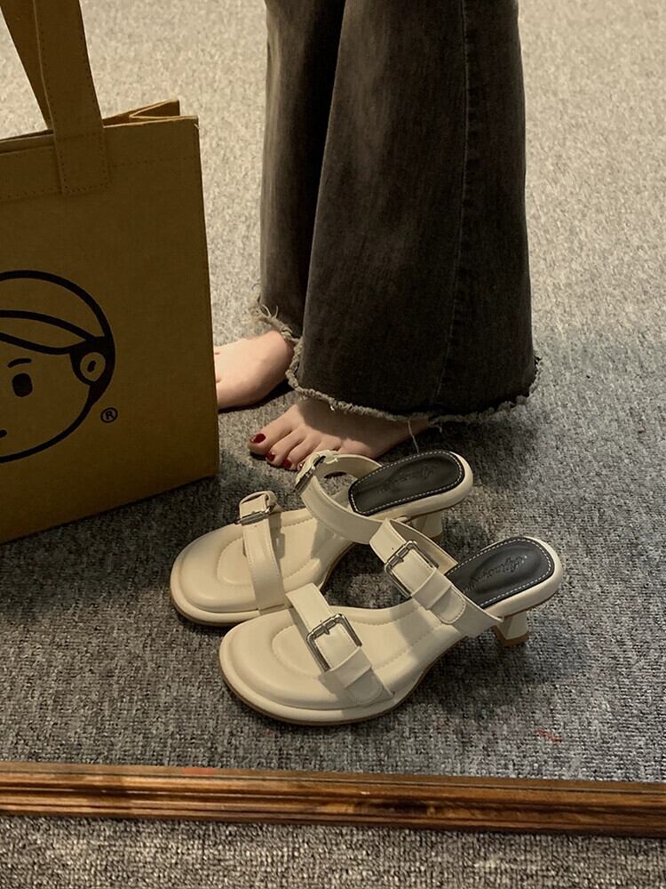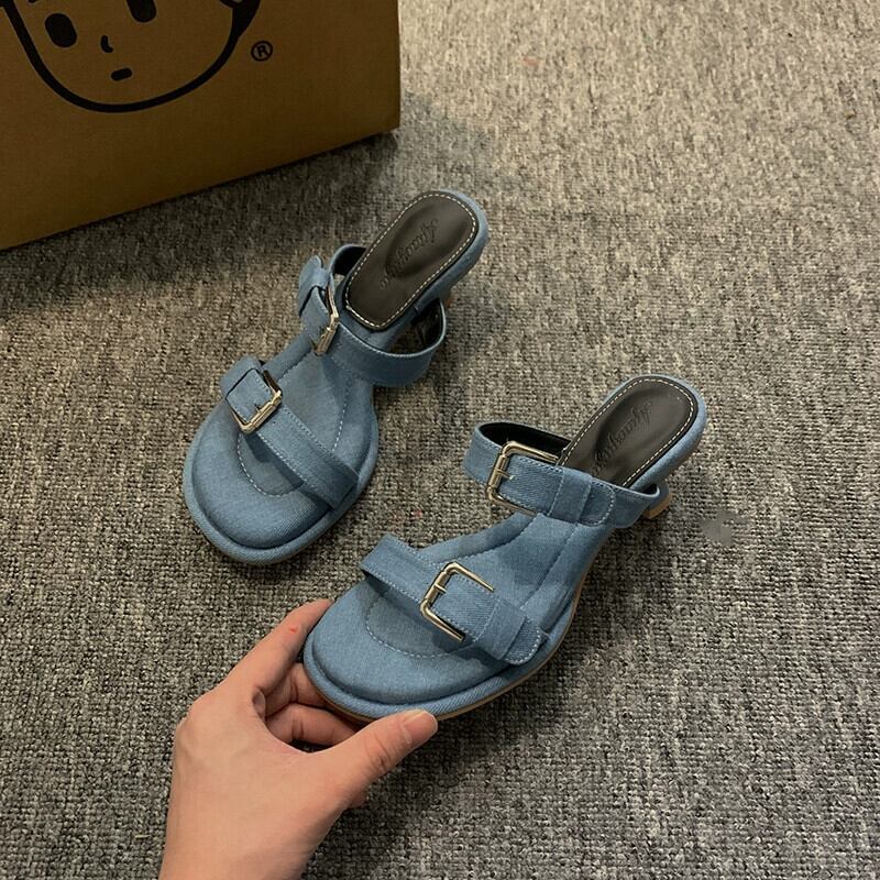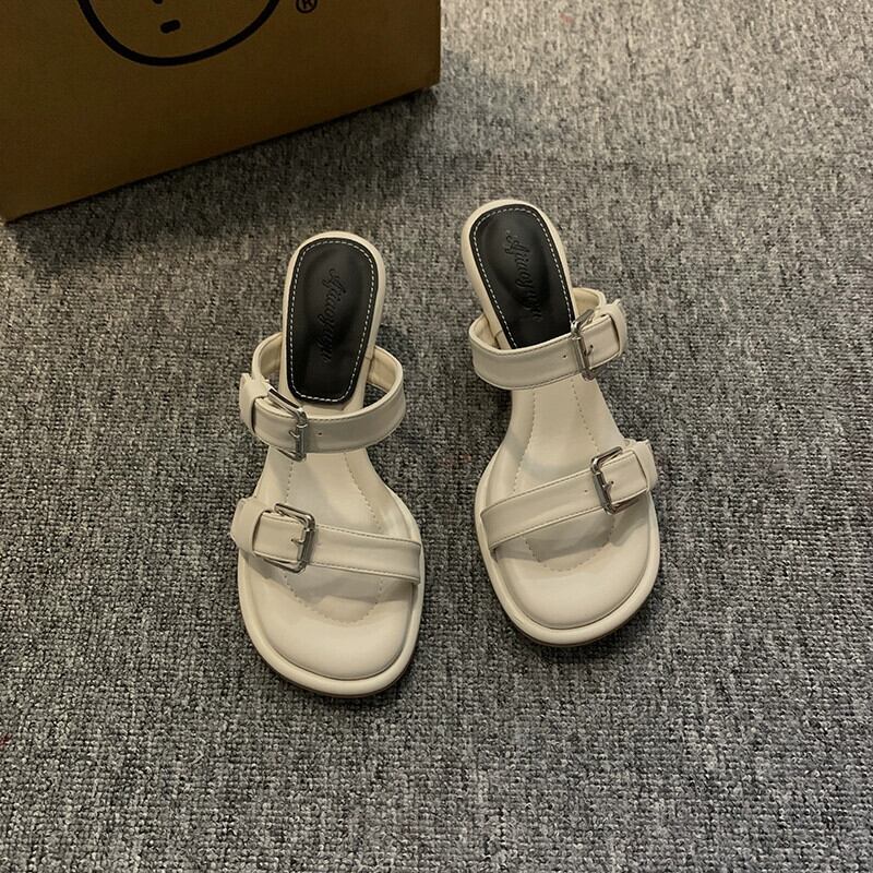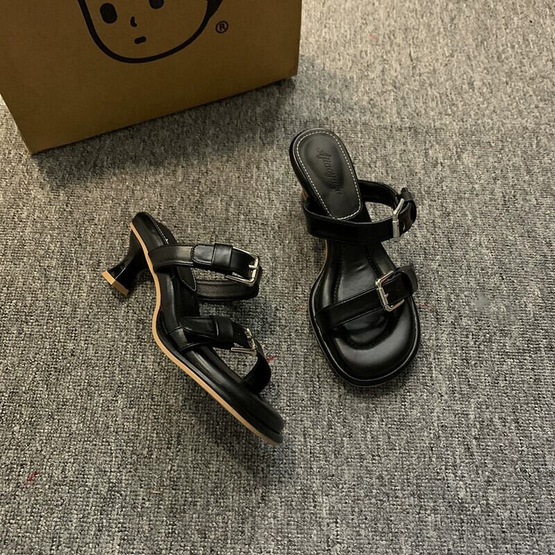 Jiabu 偽スリッパ女性のアウターウェア 2023 夏の新ファッションオールマッチレトロベルトバックルスティレットハイヒールの靴潮 シューズ ミュール サマー 夏物 ハーネス jxjxf14363213050