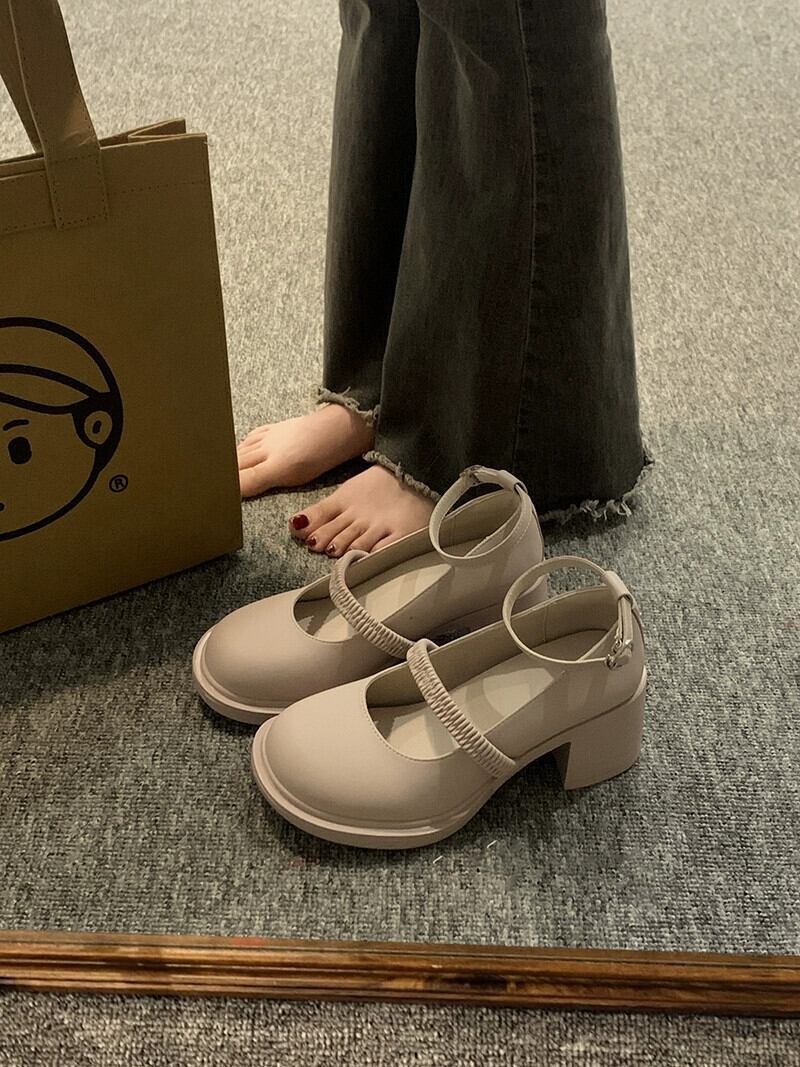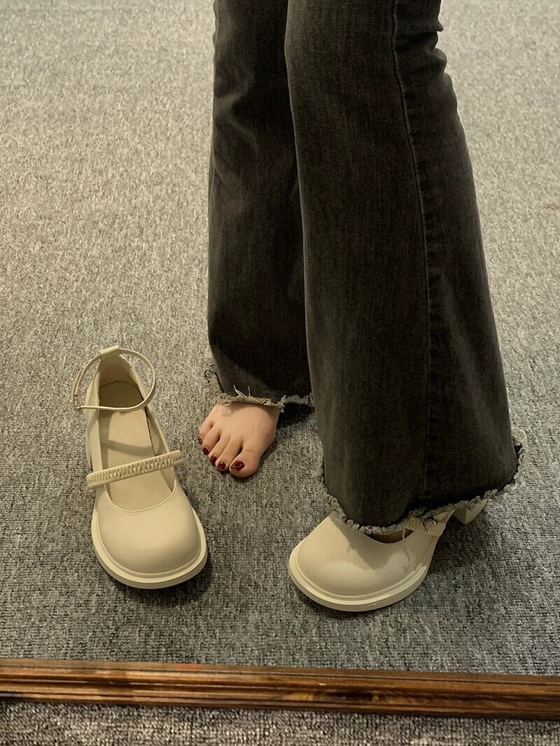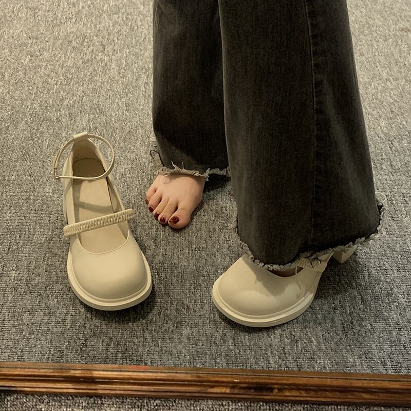 シングルシューズ女性の 2023 春の新ファッションオールマッチ小さな厚いヒール滑り止めアインスタイルメリージェーンシューズトレンド 靴 スプリング 春物 jxjxf89333312725