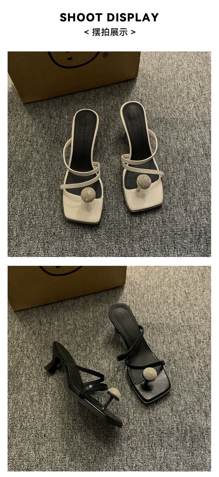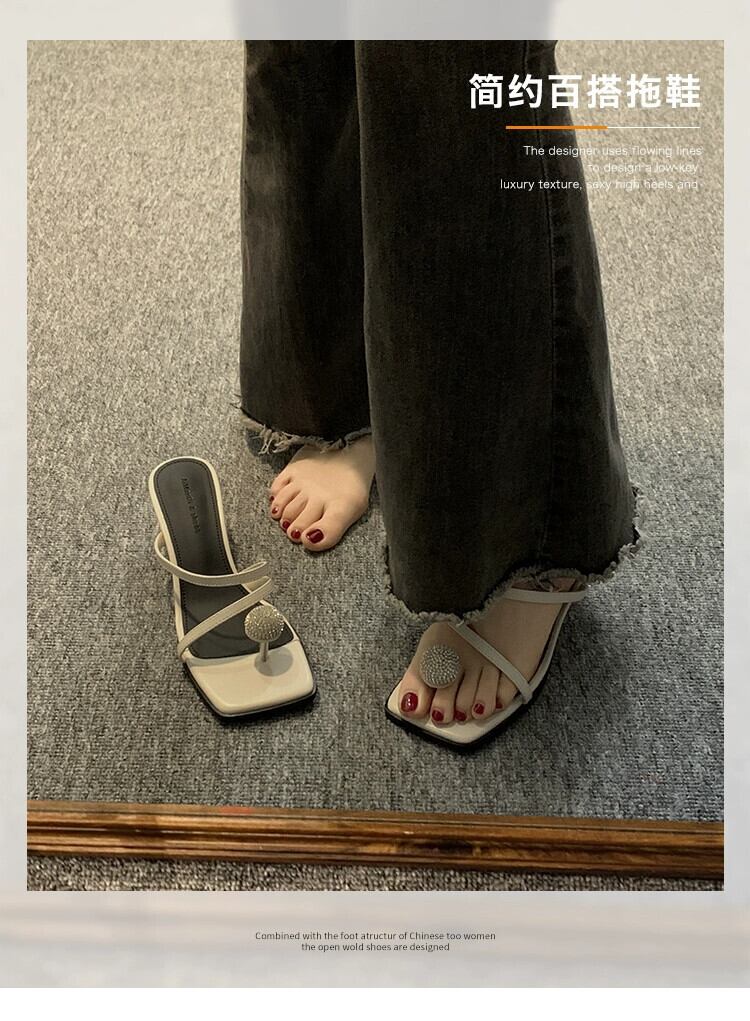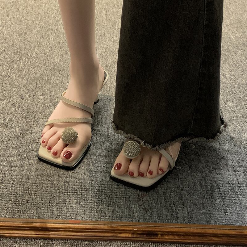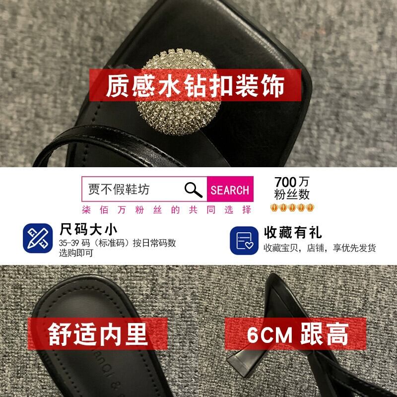 女性のスリッパアウターウェア 2023 夏の新しいスーパーファッションオールマッチレトロラインストーンビーチサンダルハイヒールサンダルとスリッパ 靴 シューズ ミュール サマー 夏物 jxjxf86068149619
