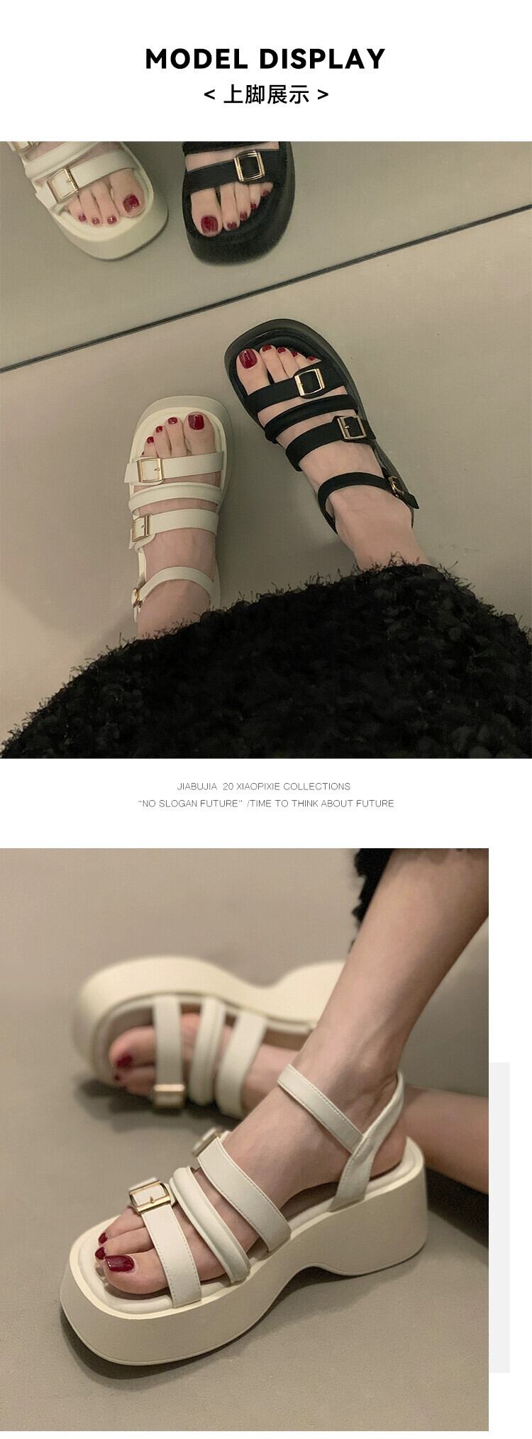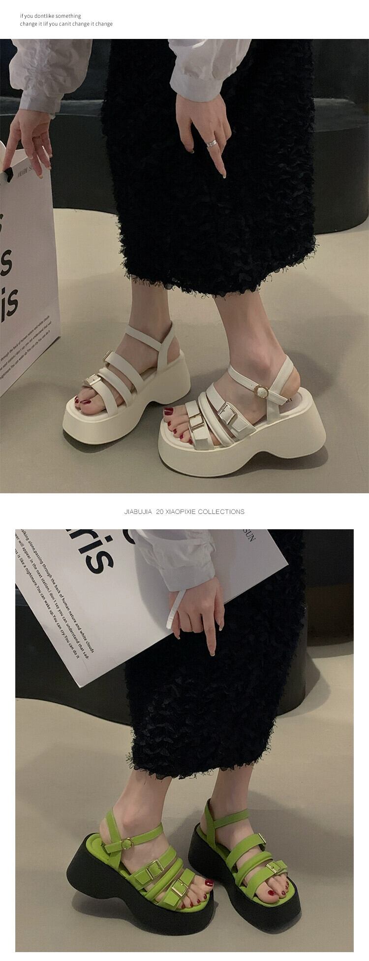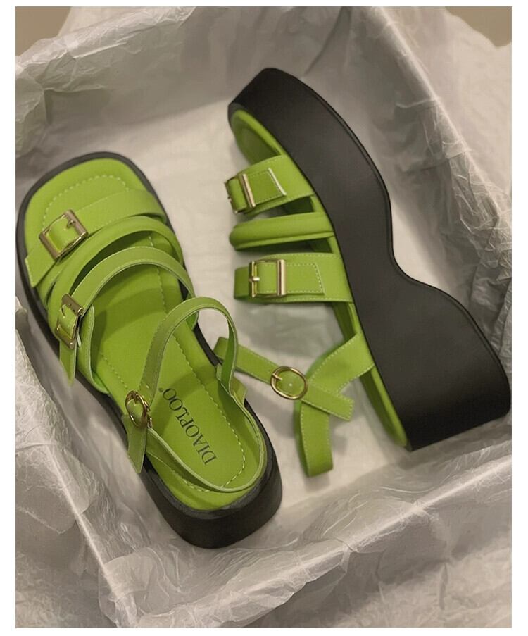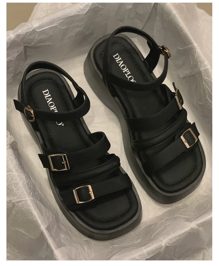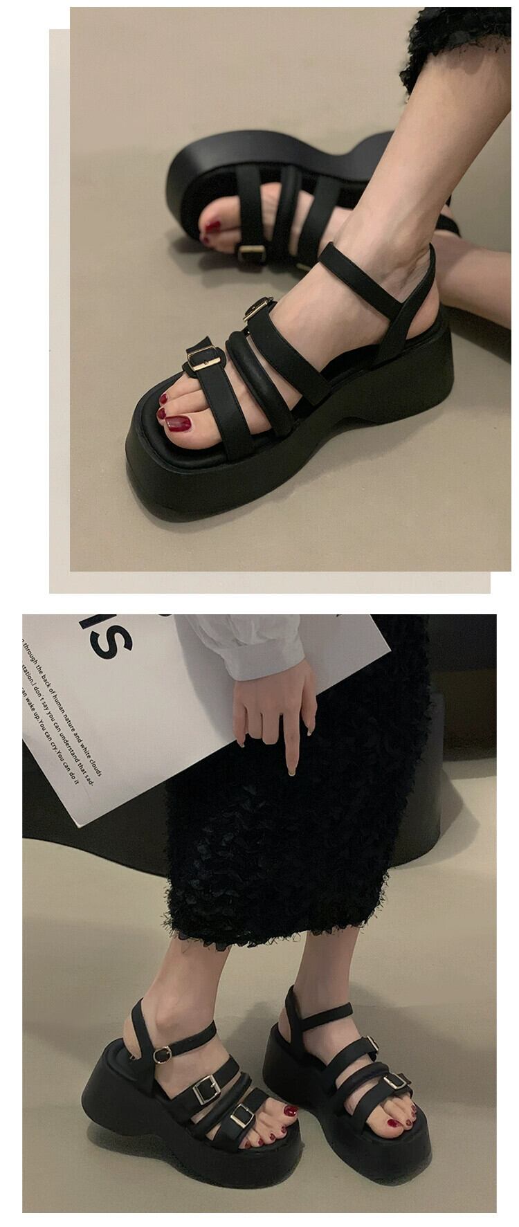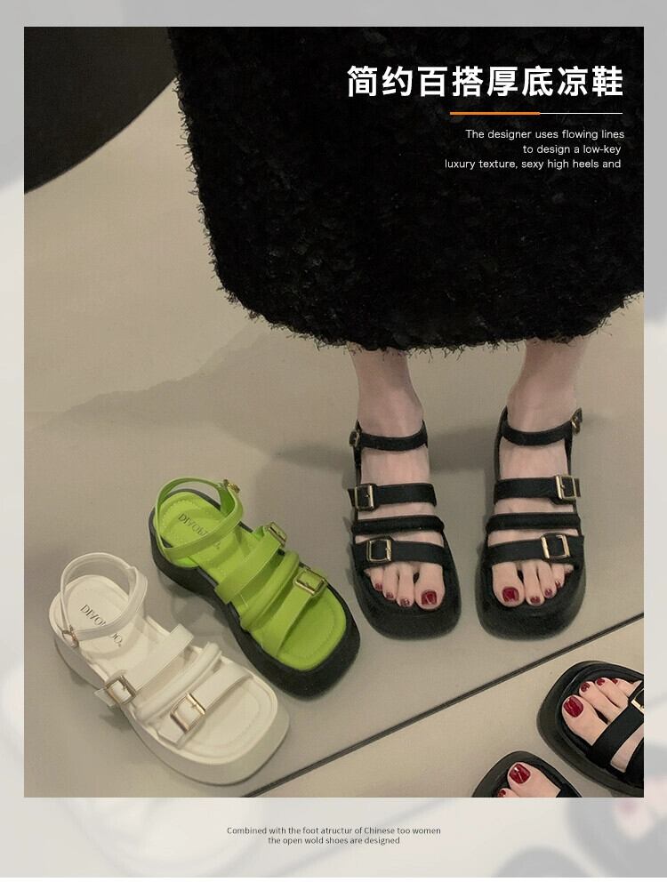 太いヒールサンダルの女性の 2023 夏の新ファッションベルトバックルレトロオールマッチ高さの増加小さなビーチシューズ潮 靴 サマー 夏物 ハーネス jxjxf30925953677