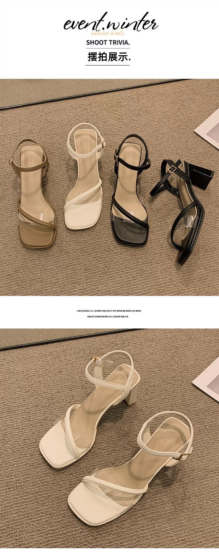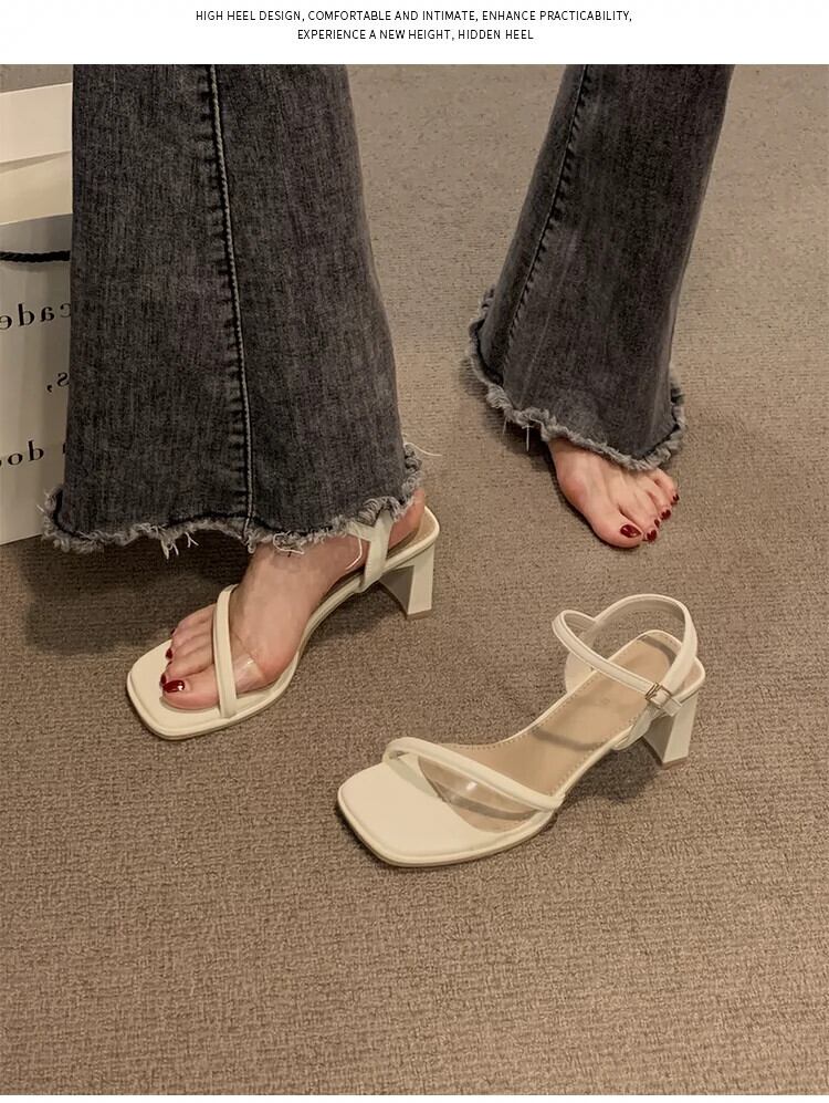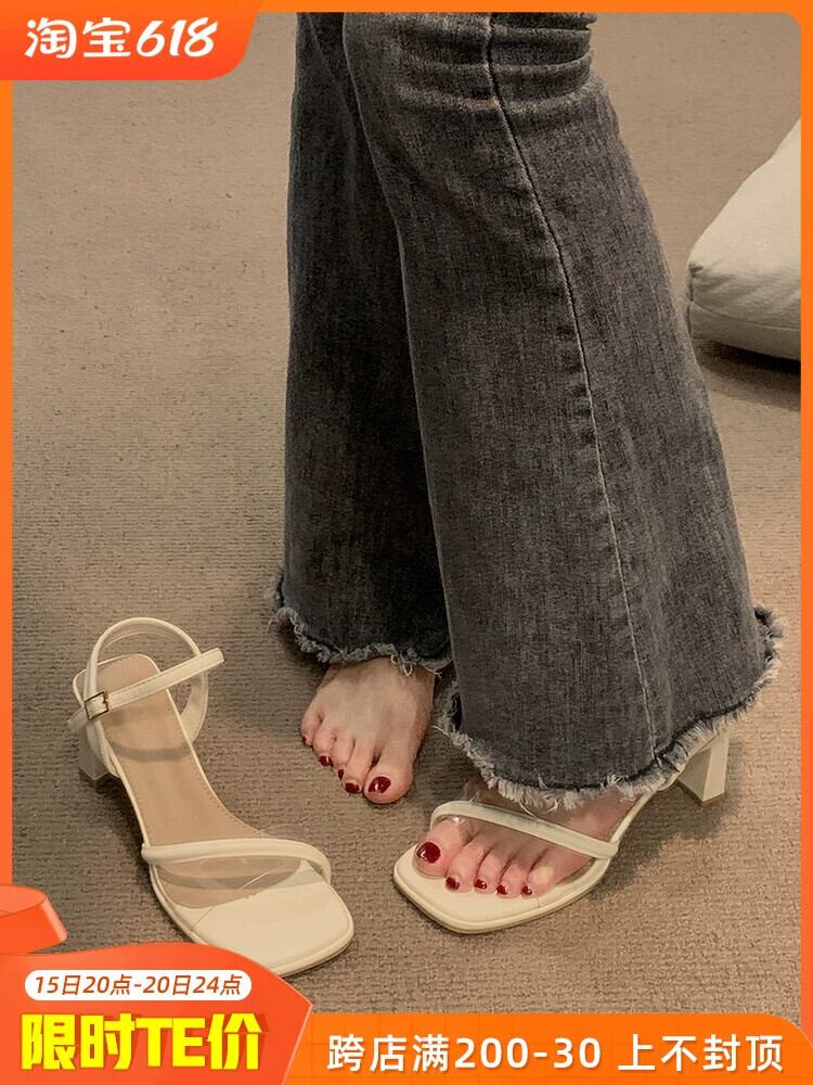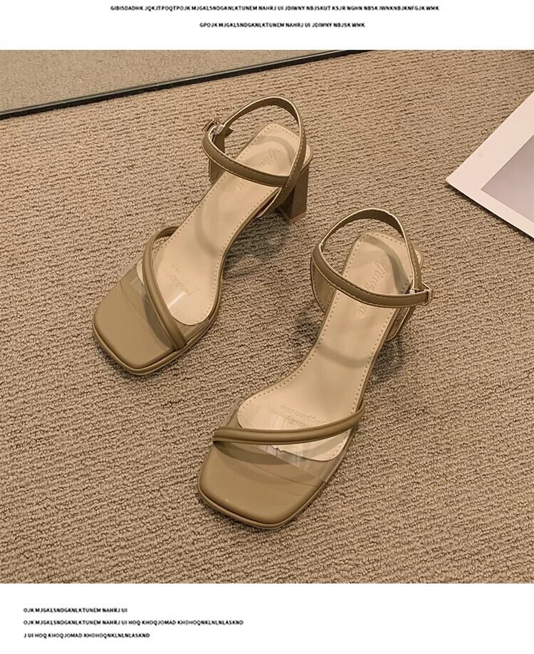 女性のサンダル 2023 夏の新ファッションオールマッチ優しいレトロな気質分厚いノンスリップ eign スタイルのハイヒール 靴 シューズ サマー 夏物 jxjxf73417363415