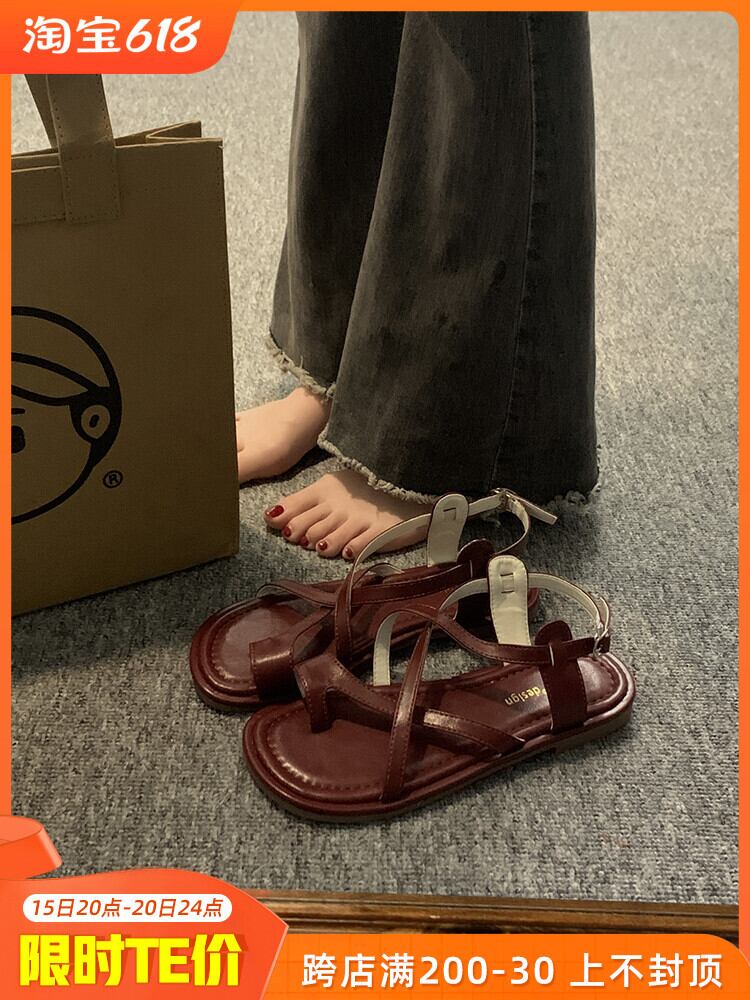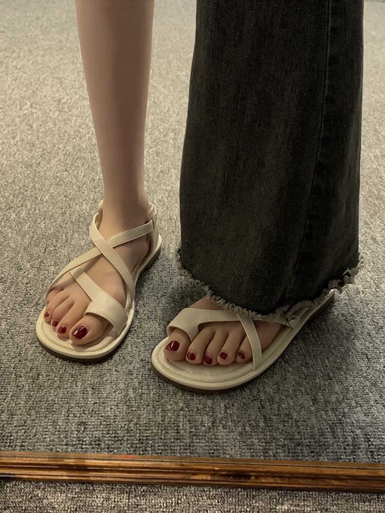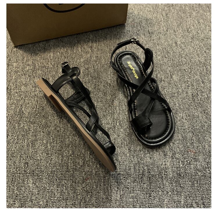 インターネットセレブサンダルレディース 2023 夏の新ファッションオールマッチレトロアインスタイル comtable 平底つま先ローマンシューズトレンド 靴 サマー 夏物 jxjxf21138361501