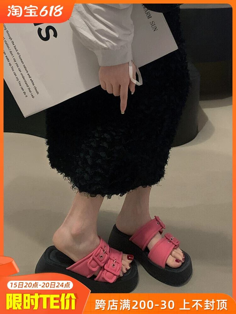 アウター厚底スリッパ女性 2023 夏の新ファッションオールマッチベルトバックル小さな comtable サンダルとスリッパトレンド ミュール 靴 シューズ サマー 夏物 ハーネス jxjxf43353697947