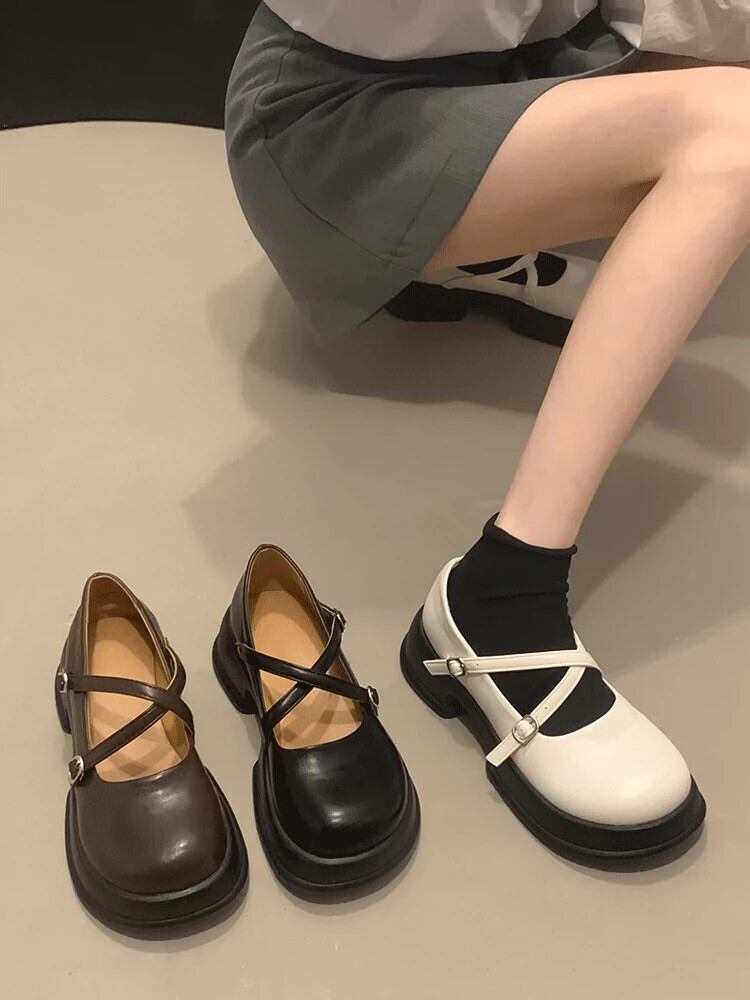 太いヒールのシングルシューズの女性の 2023 春と秋の新ファッションオールマッチ comtable フレンチレトロノンスリップメリージェーン革靴 スプリング 春物 オータム 秋物 レザー jxjxf50772946261