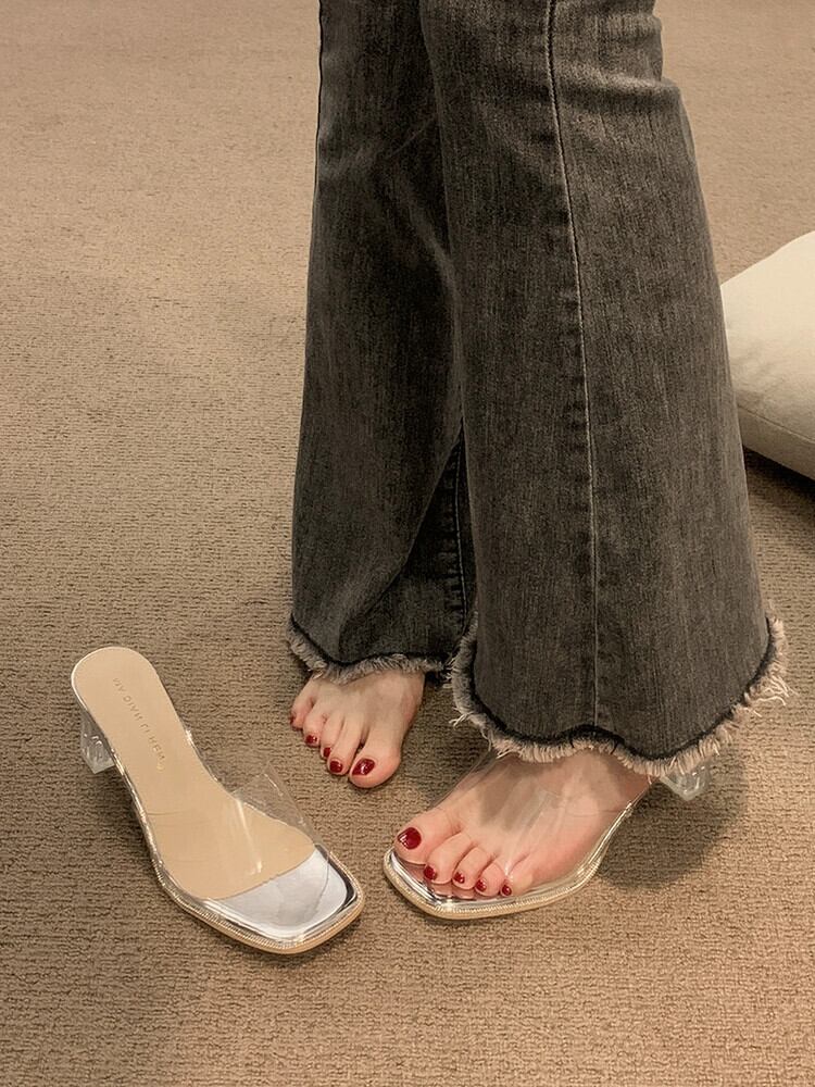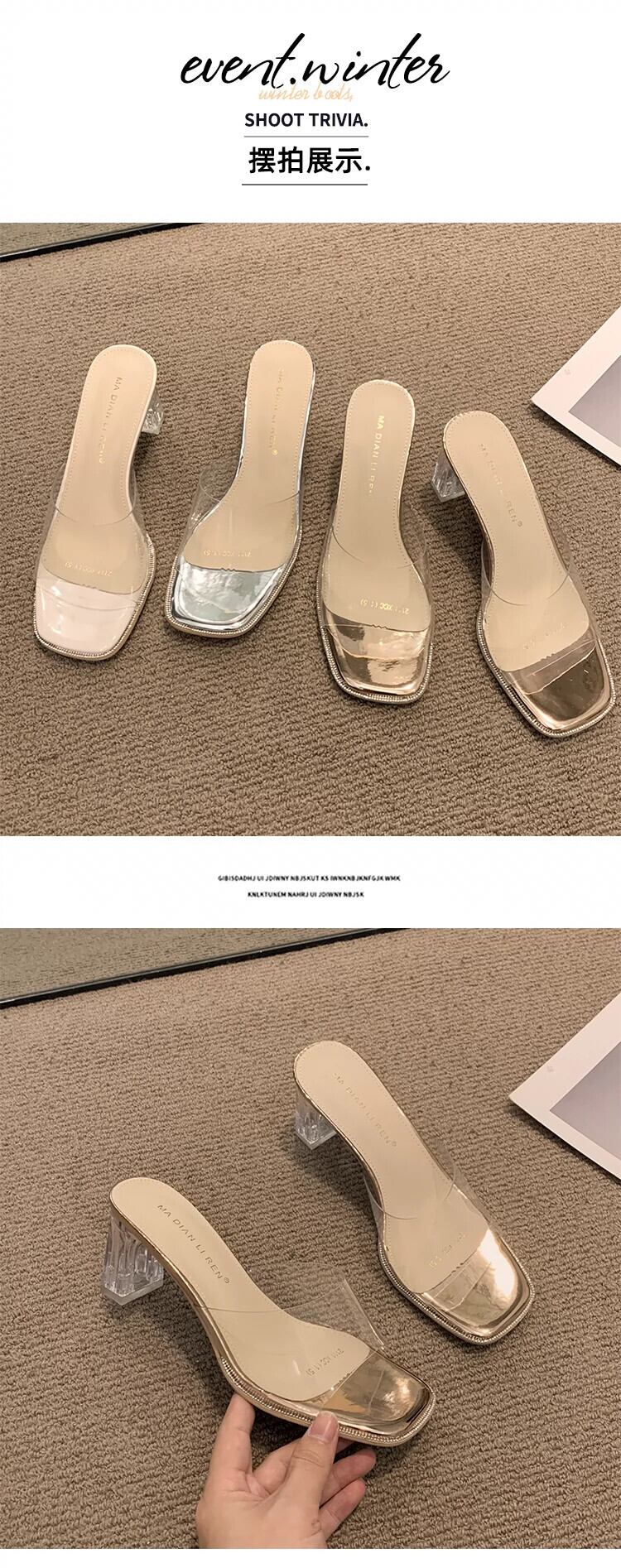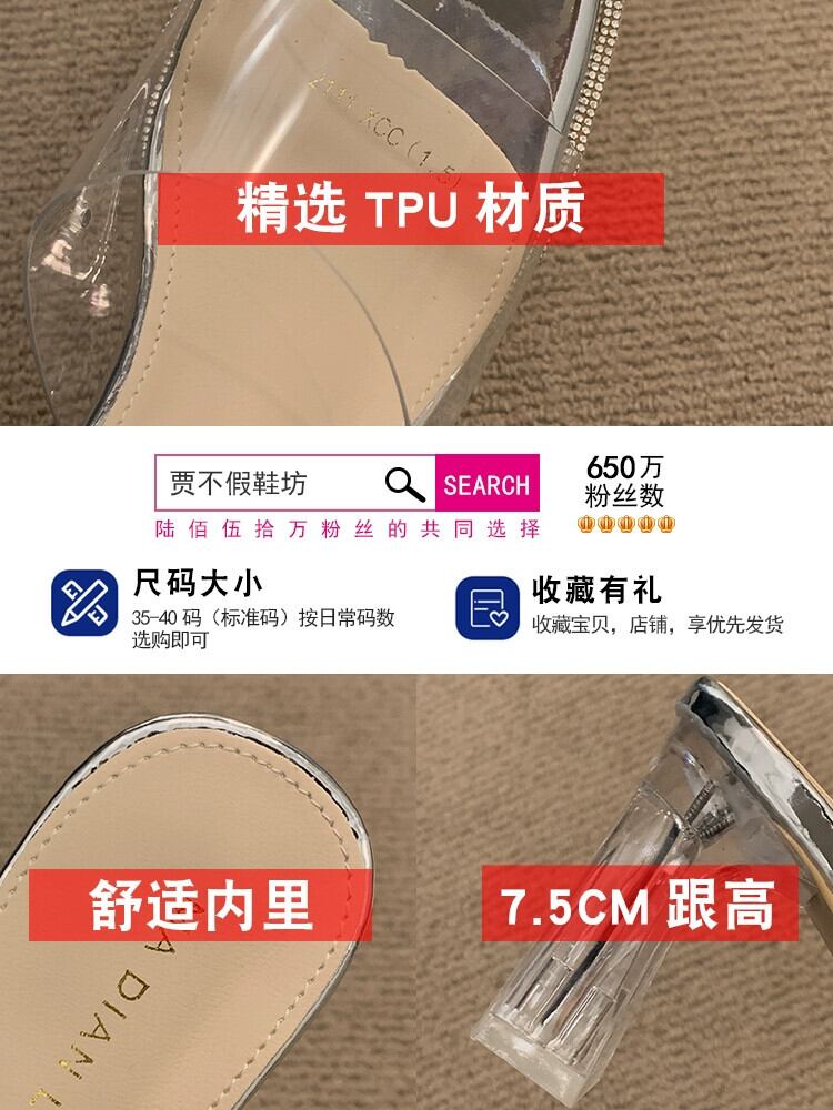 インターネットセレブスリッパレディースアウターウェア 2023 夏の新しいトレンディなオールマッチ透明ワードクリスタルハイヒールサンダルとスリッパトレンド 靴 シューズ ミュール サマー 夏物 jxjxf51613076230