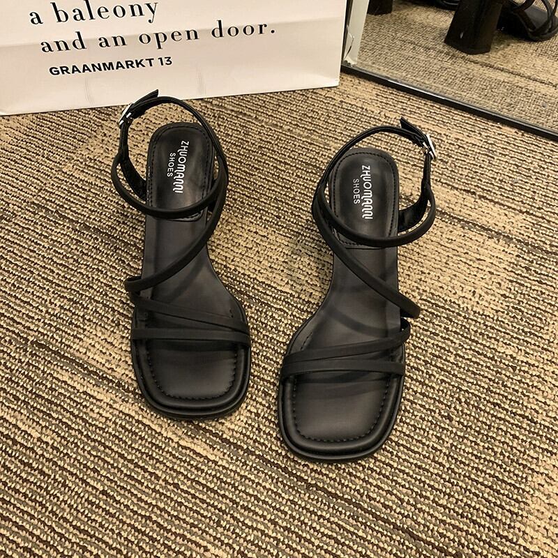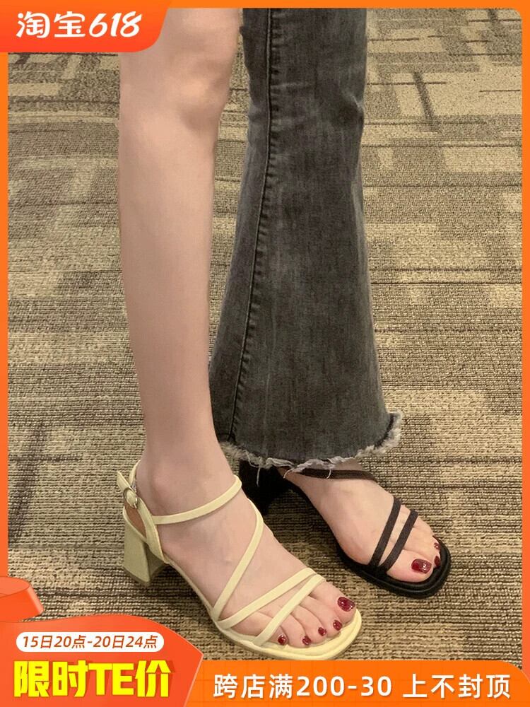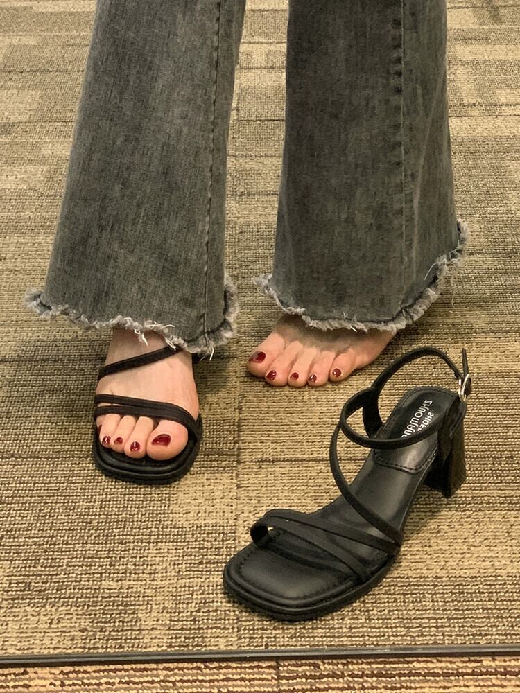 厚底サンダルレディース 2023 夏の新作ファッションオールマッチフレンチレトロな気質セレブ一言ハイヒールシューズ 靴 サマー 夏物 jxjxf49708942811
