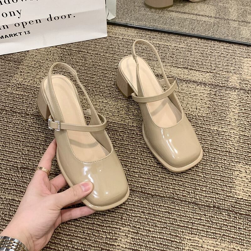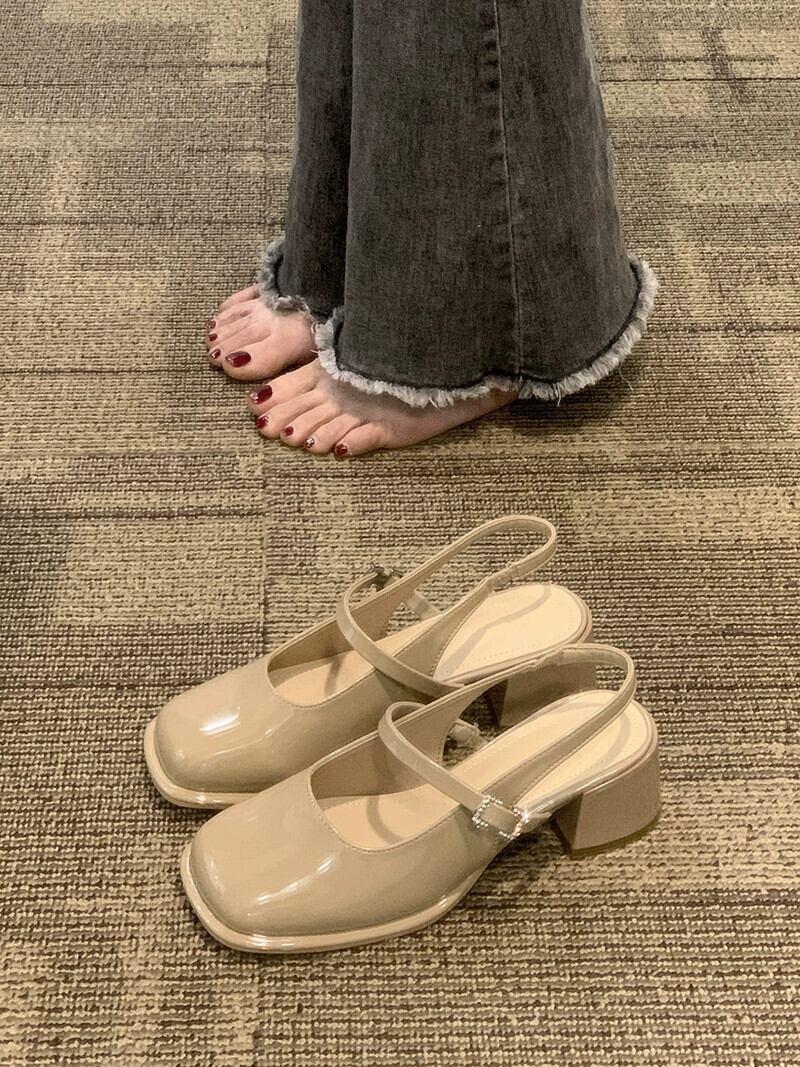 厚いヒール包頭サンダル女性の 2023 夏の新ファッションオールマッチフレンチレトロ気質スクエアヘッドハイヒールトレンド 靴 シューズ サマー 夏物 スクウェア jxjxf30223007713