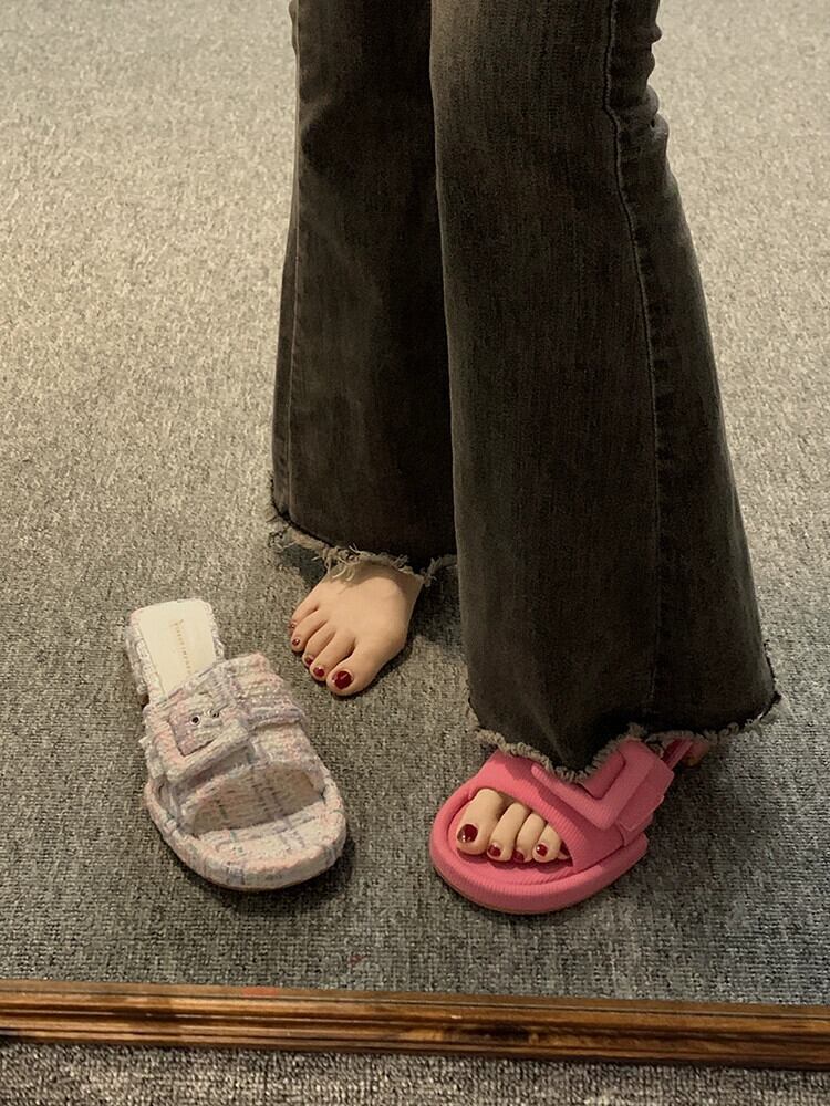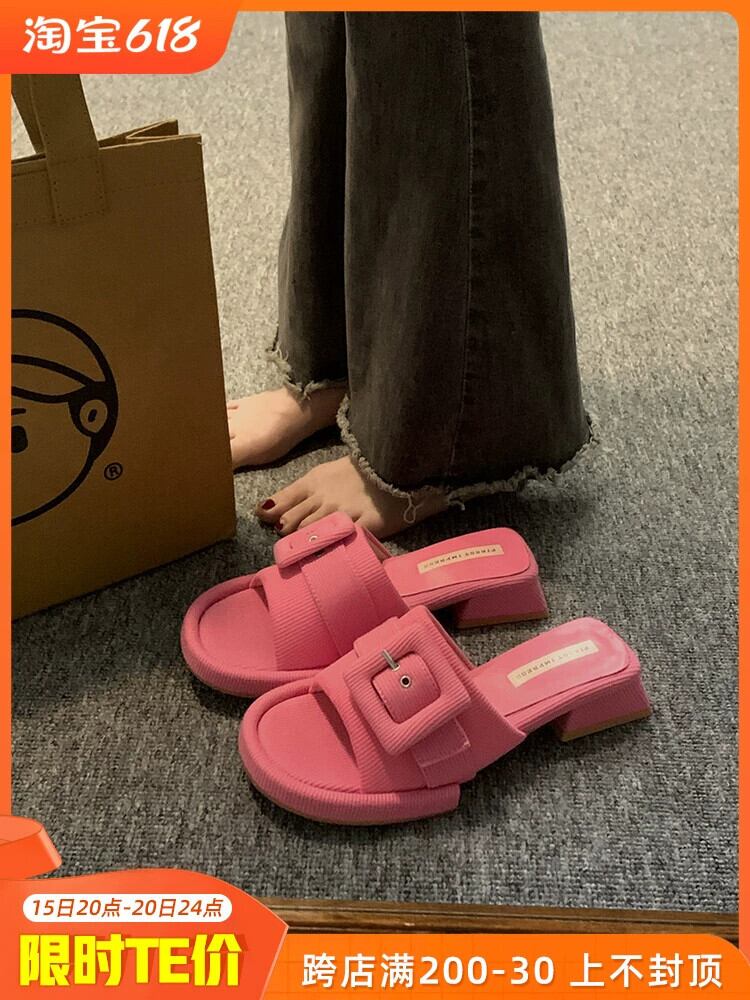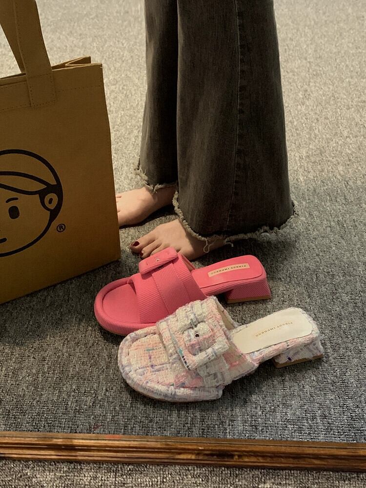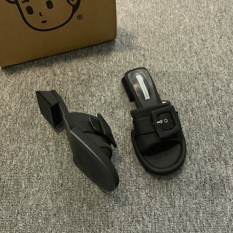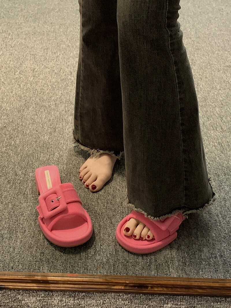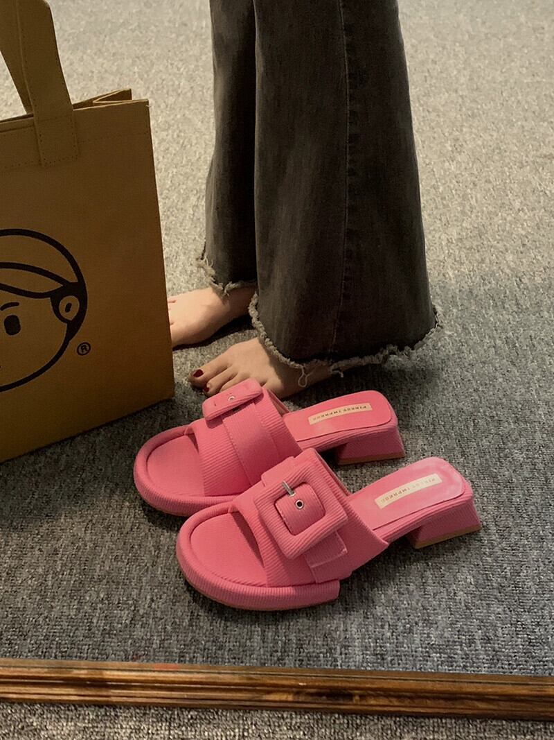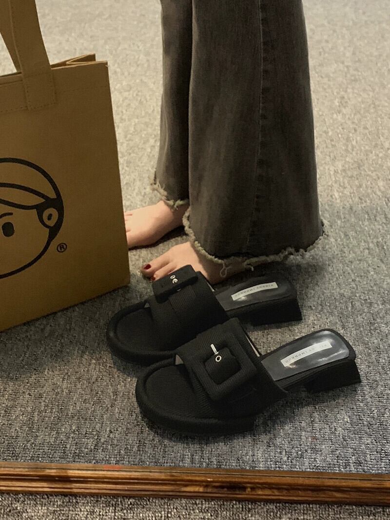 スリッパ着用夏の女性の 2023 新しいファッションオールマッチベルトバックルフェアリースタイルチャンキーヒールノンスリップフリップフロップ ミュール 靴 シューズ サマー 夏物 ハーネス jxjxf51609002346
